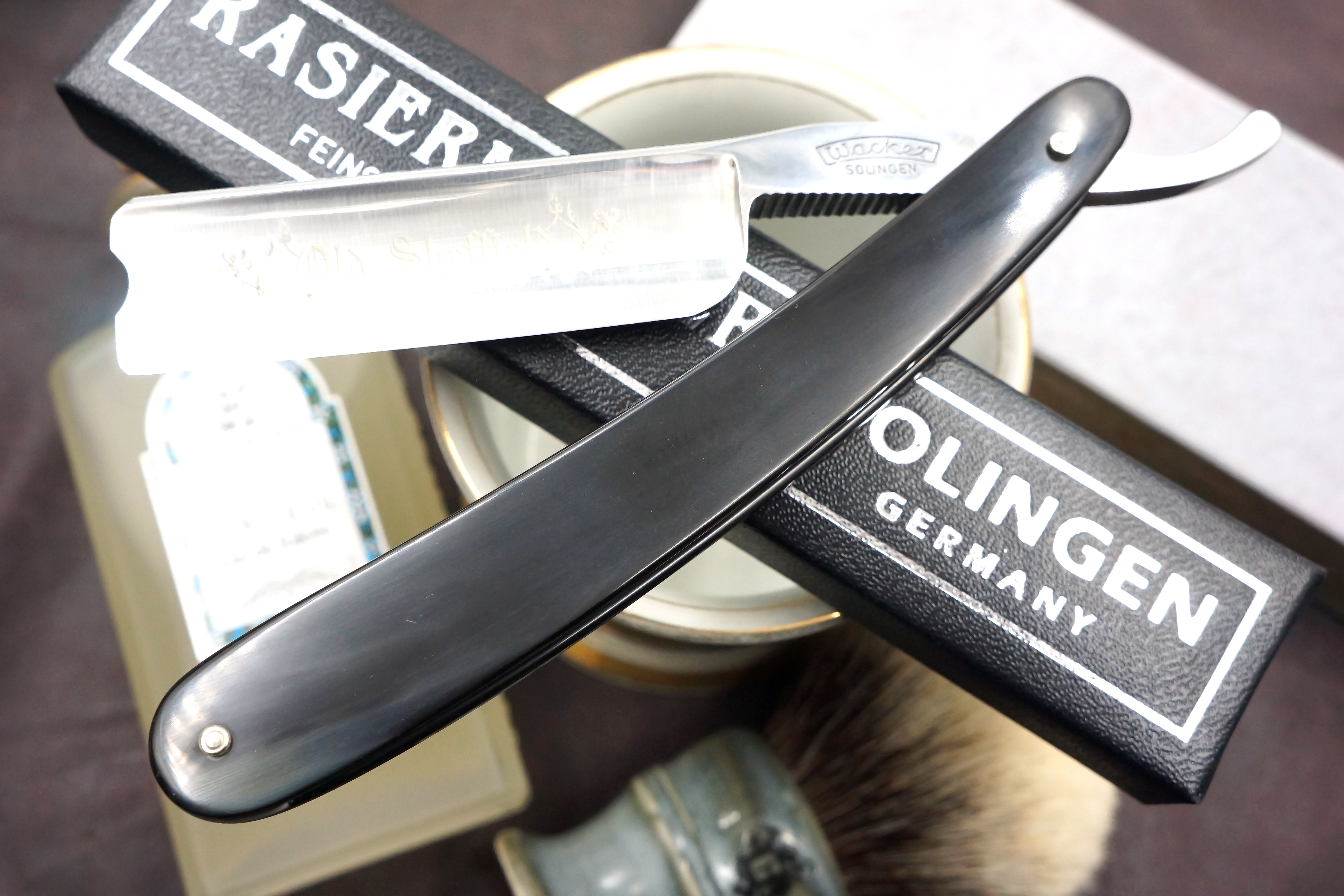 Wacker 6/8 Full Hollow Blade - Horn Scales Solingen Straight Razor - Shave Ready