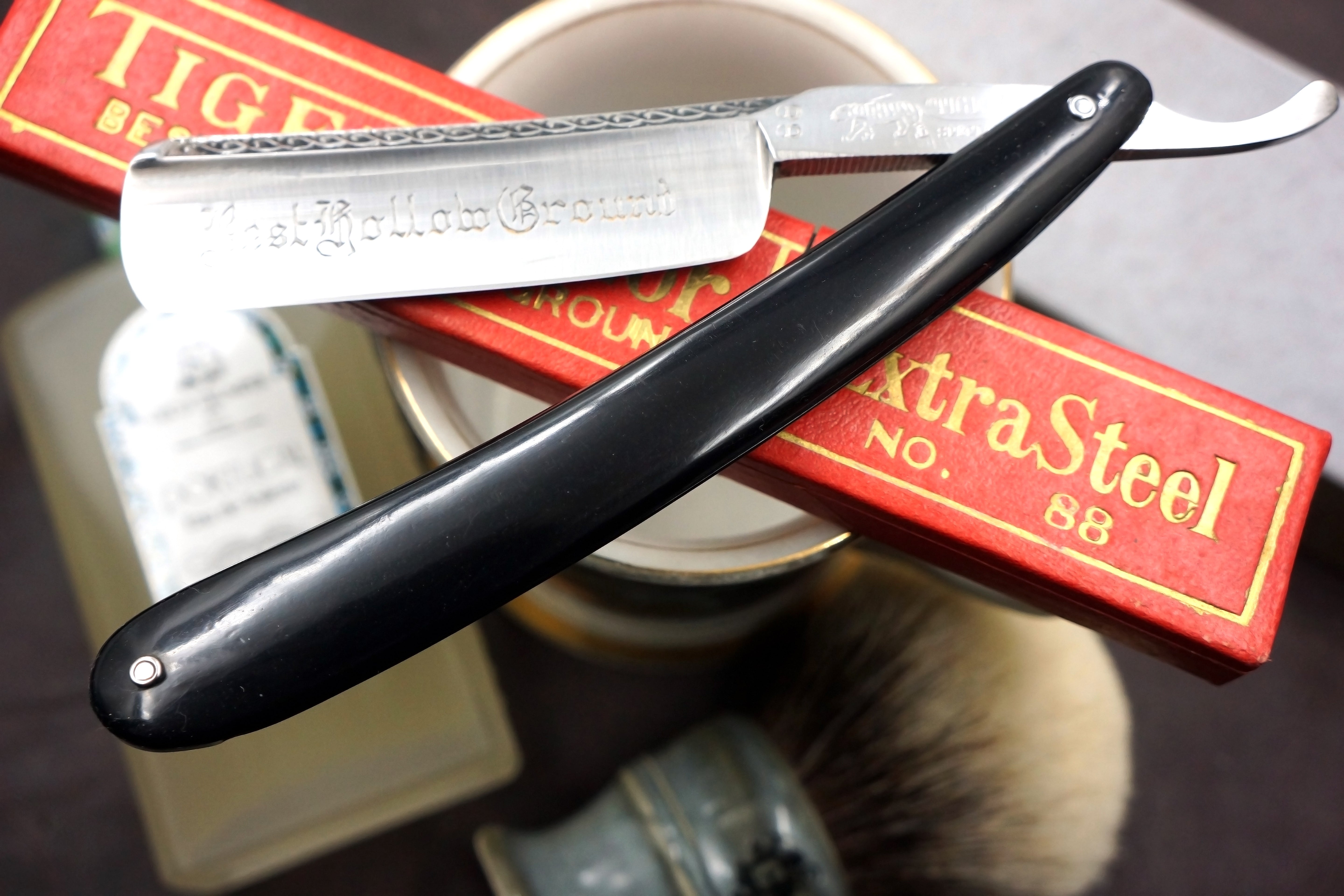 "Progress" 28 - RARE NOS 7/8 Full Hollow Vintage Straight Razor Shave Ready - Black Scales