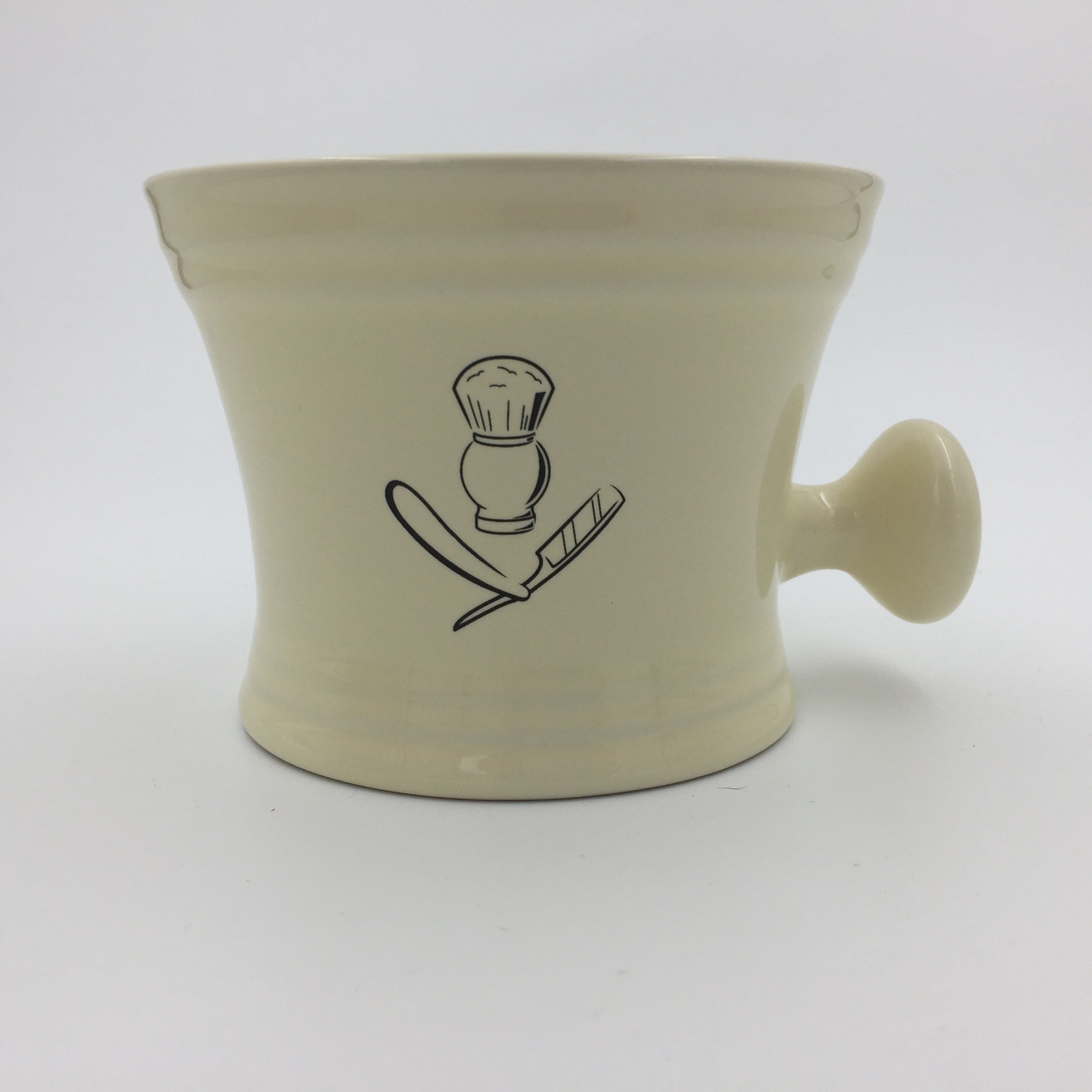 Dieser Becher ist genau das, was Sie brauchen, um Ihre Lieblingsrasiercreme oder -seife mit Ihrem Rasierpinsel aufzuschäumen. Dieser Becher aus hochwertiger Keramik hat einen silbernen Rand und auf einer Seite eine Abbildung eines Rasierpinsels und eines Rasiermessers. Dieses traditionelle Design passt gut in jedes Badezimmer oder Rasierzimmerdekor. Auch in Schwarz erhältlich.