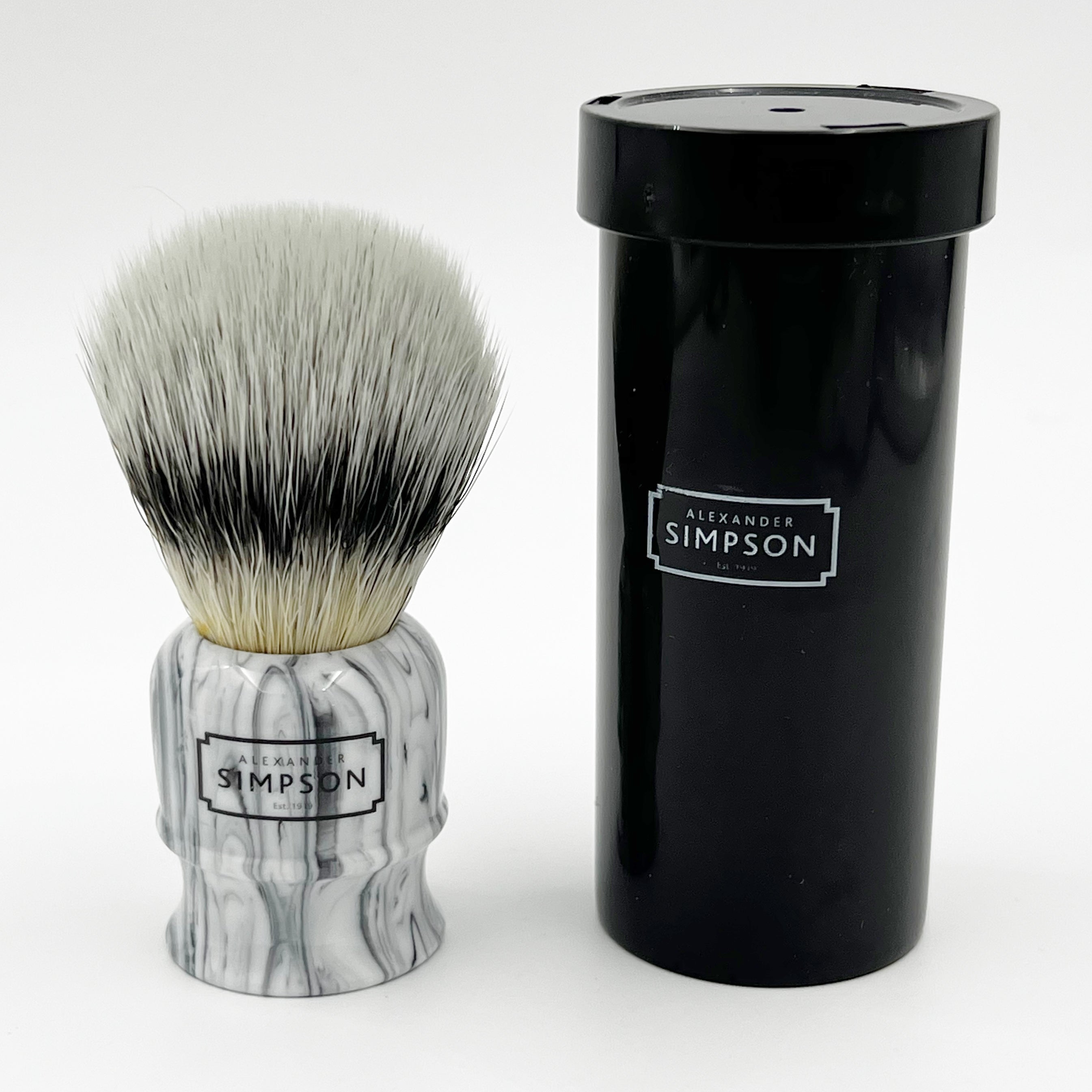 Simpson Highbury Reisepinsel – Platin Synthetik – Grauer Rasierpinsel aus italienischem Marmor