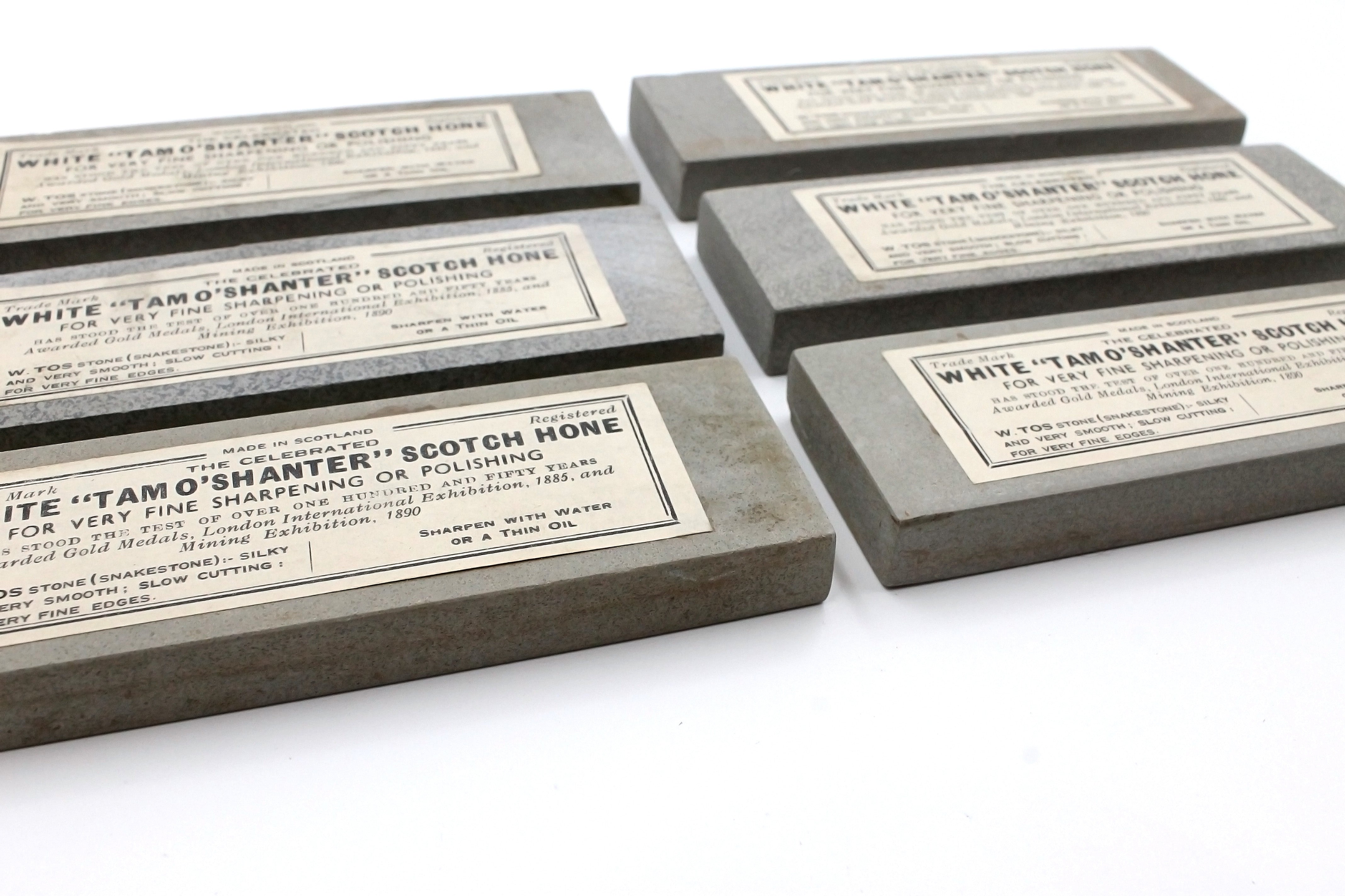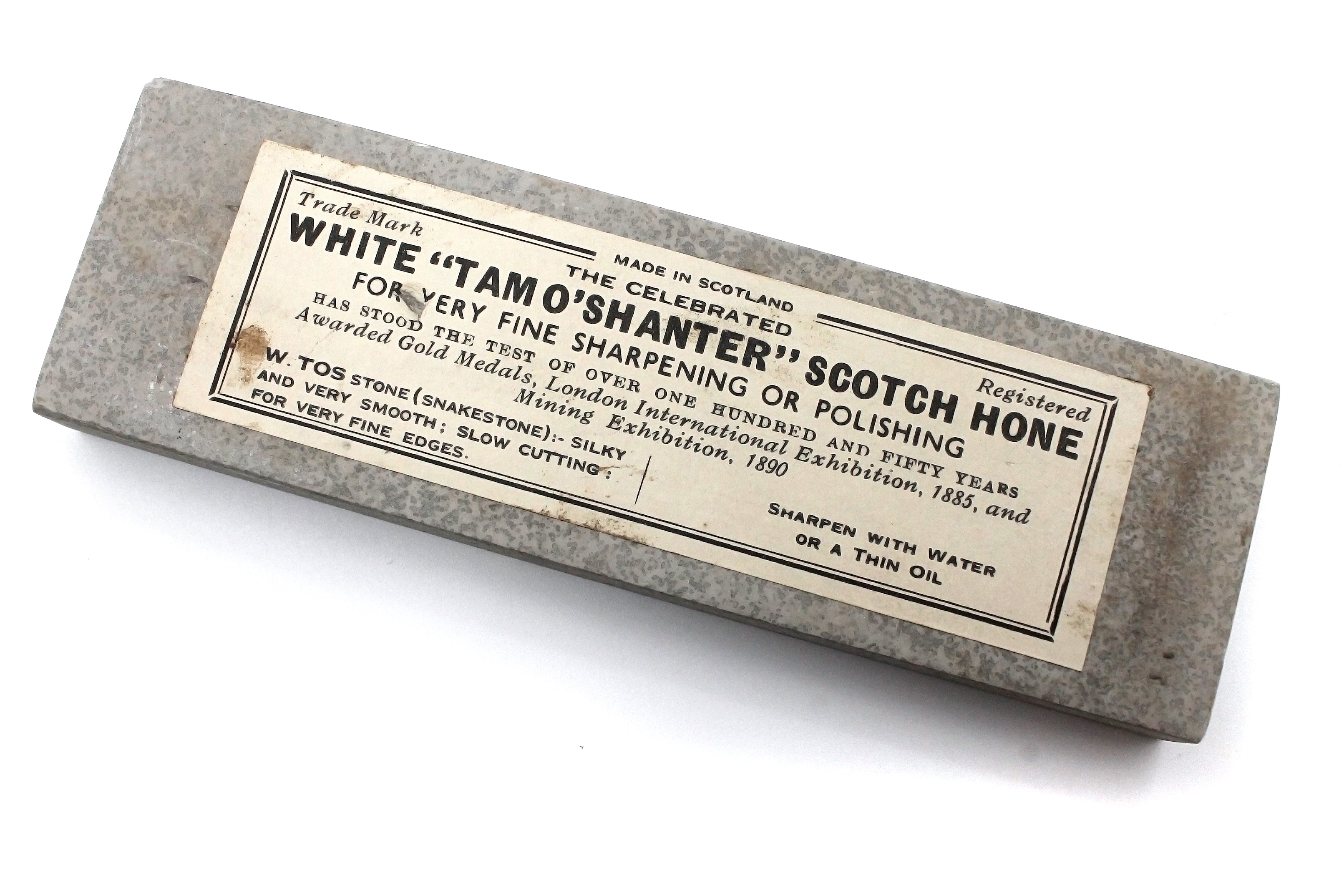 Weißer Tam O Shanter Old Stock natürlicher schottischer Schleif- und Abziehstein - 5" (125 mm) x 1 1/2" (40 mm) x 3/8" (10 mm)
