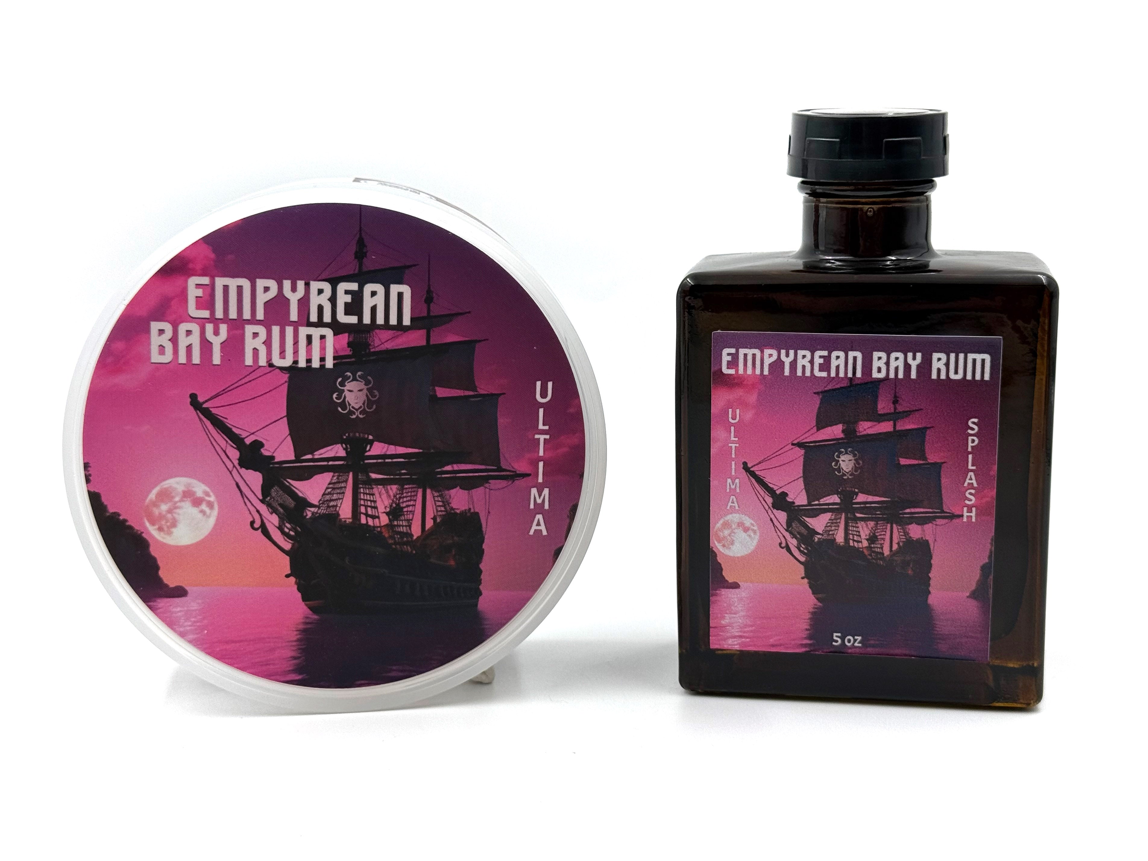 Empyrean is not your typical bay rum and is made without cinnamon or clove oils which can cause adverse effects and irritation. Instead, it is made with real Bay Leaf and rum and in place of cinnamon & cloves, real tonka & real Coumarin for warmth and added complexity. Also added are Clementine essential oil, orange blossom and hints of Apple & Pomegranate notes. Finally a whisper of geranium essential oil and a powder note turns this into a beautiful scent people who don’t normally gravitate towards traditional bay rums will love.