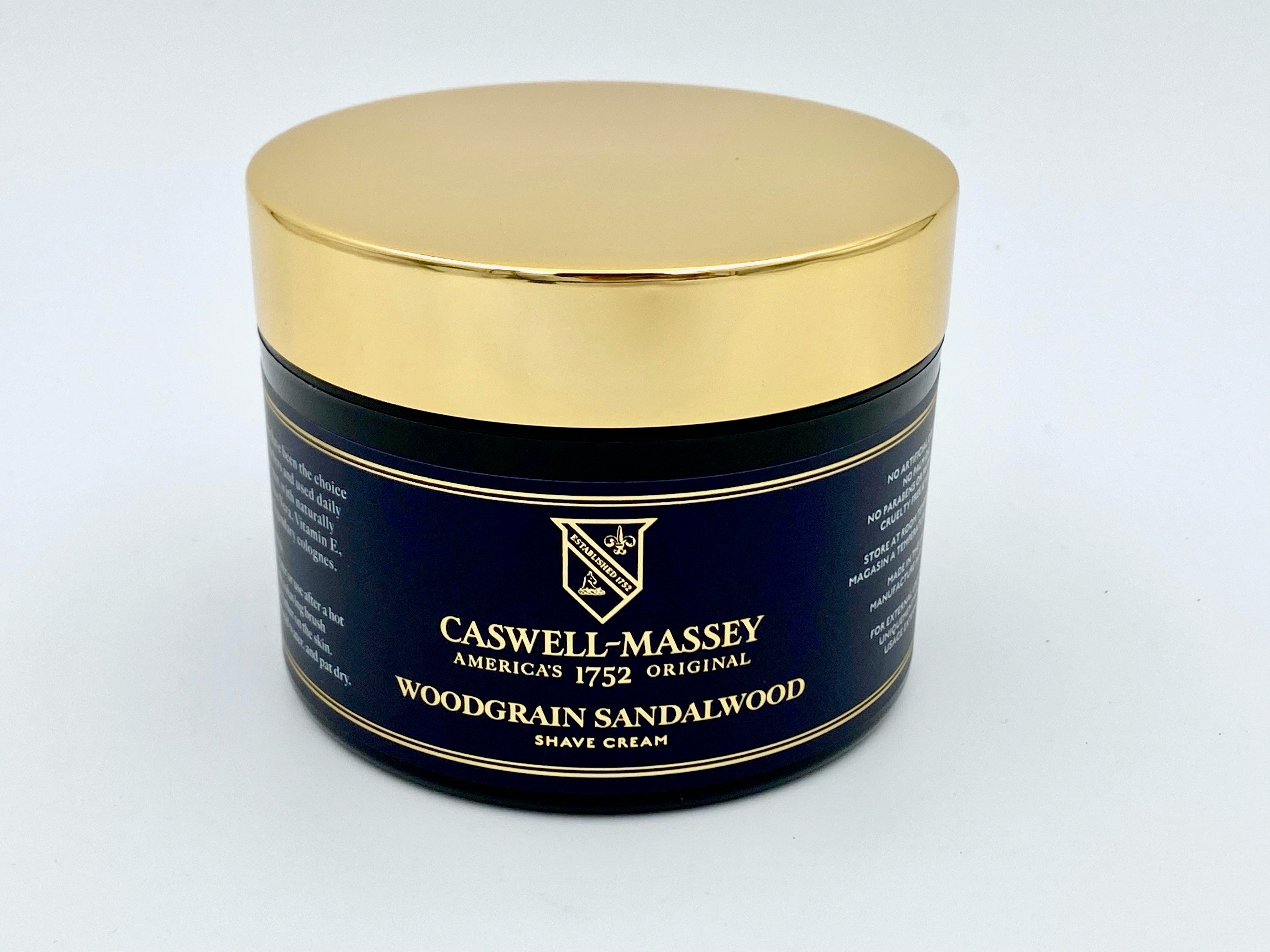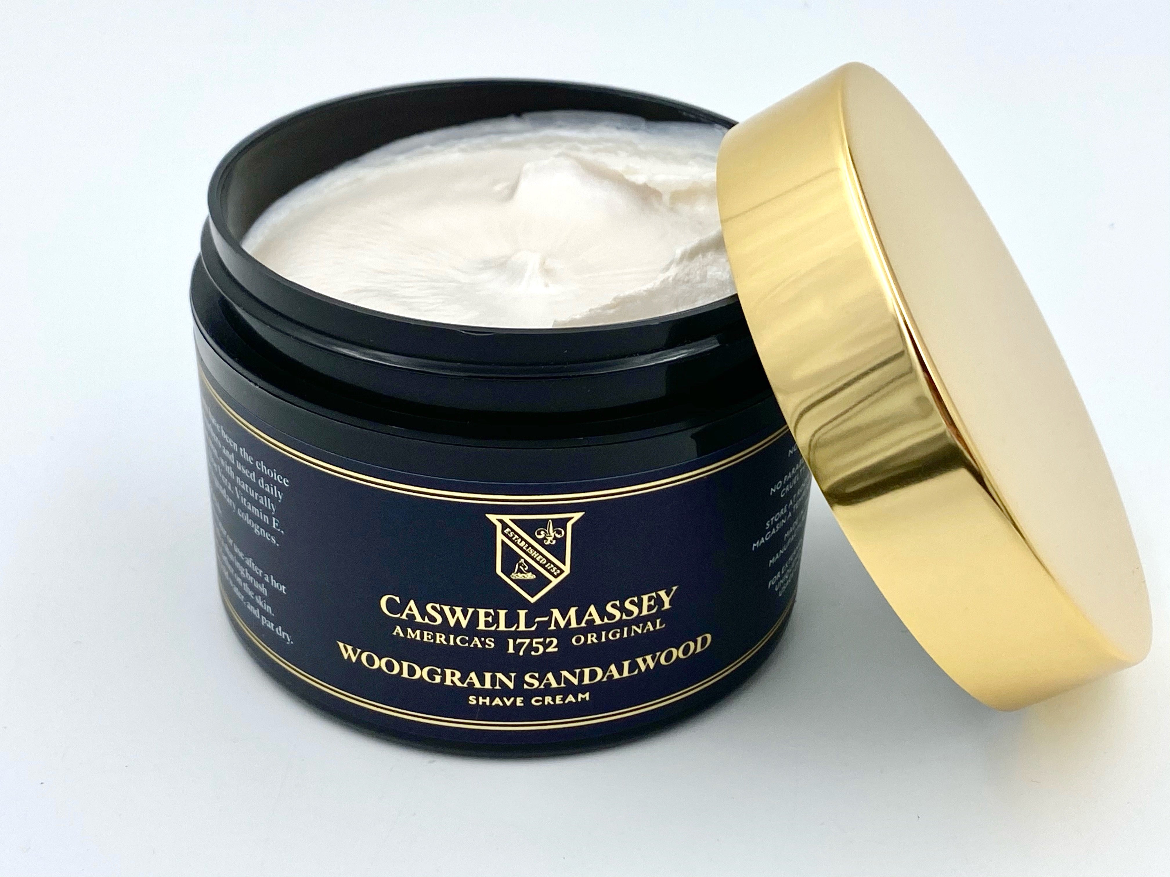 La crème à raser Woodgrain Sandalwood est l'une des formules de crème à raser les plus vendues de Caswell Massey avec un mélange d'albumine de santal, de bois de cèdre et d'épices qui restent un favori durable/