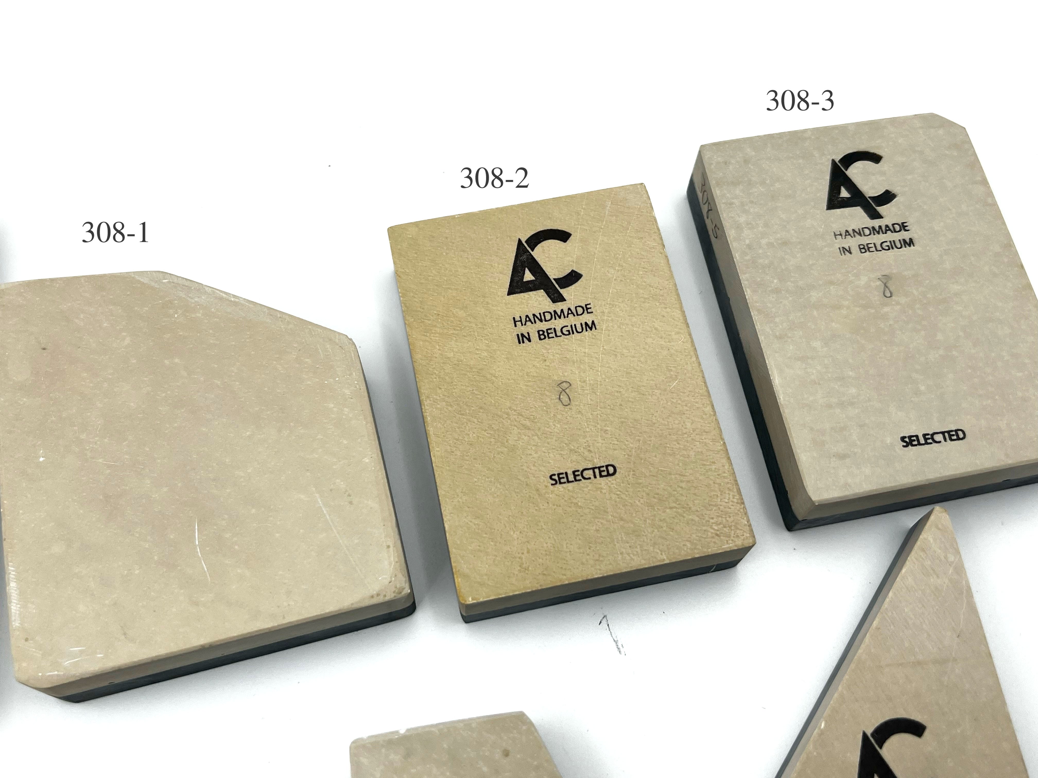 Les bouts de coticule belges sont des pierres de forme irrégulière, taillées pour maximiser la taille de l'affûtage à partir du précieux matériau coticule jaune.