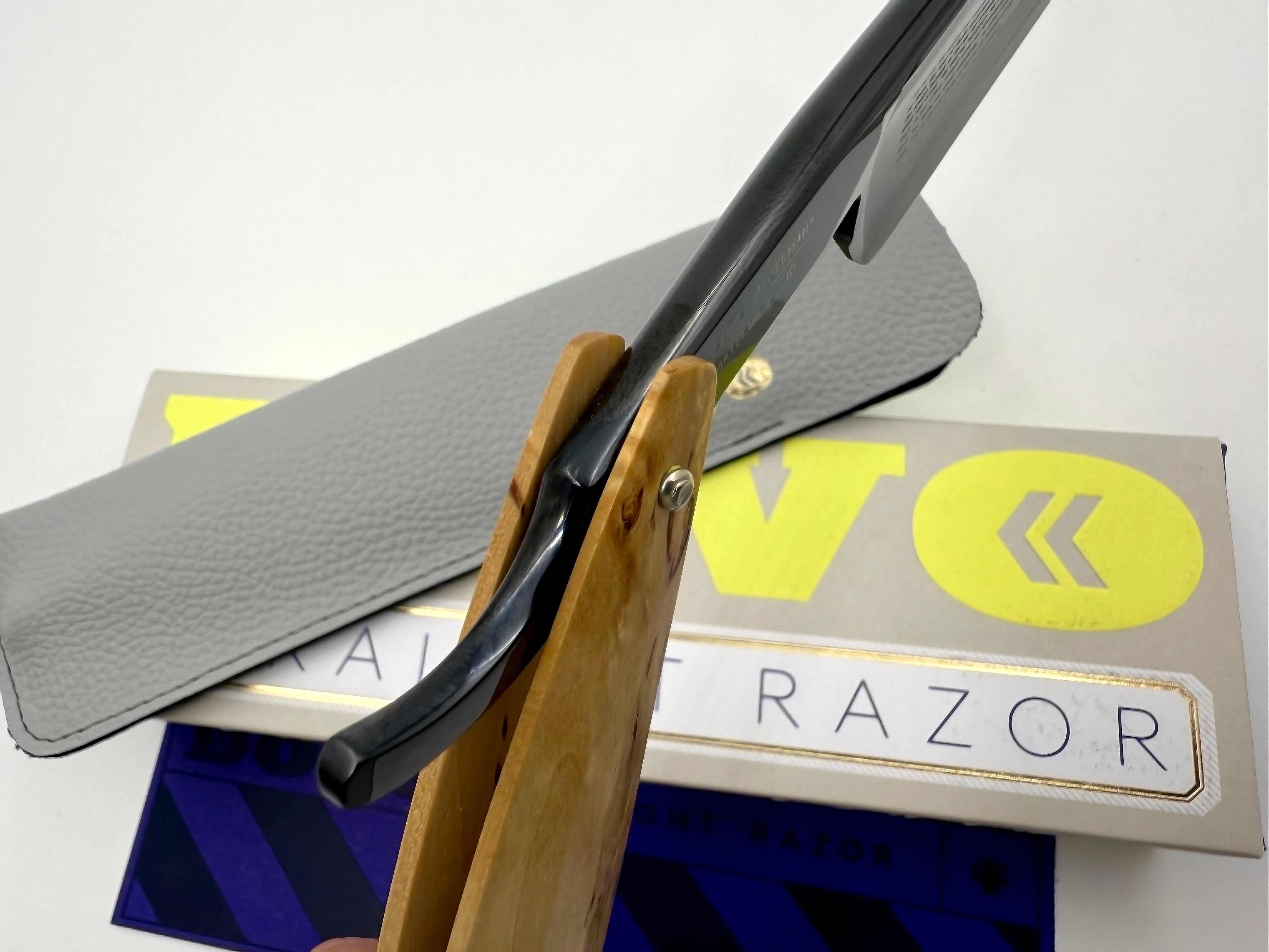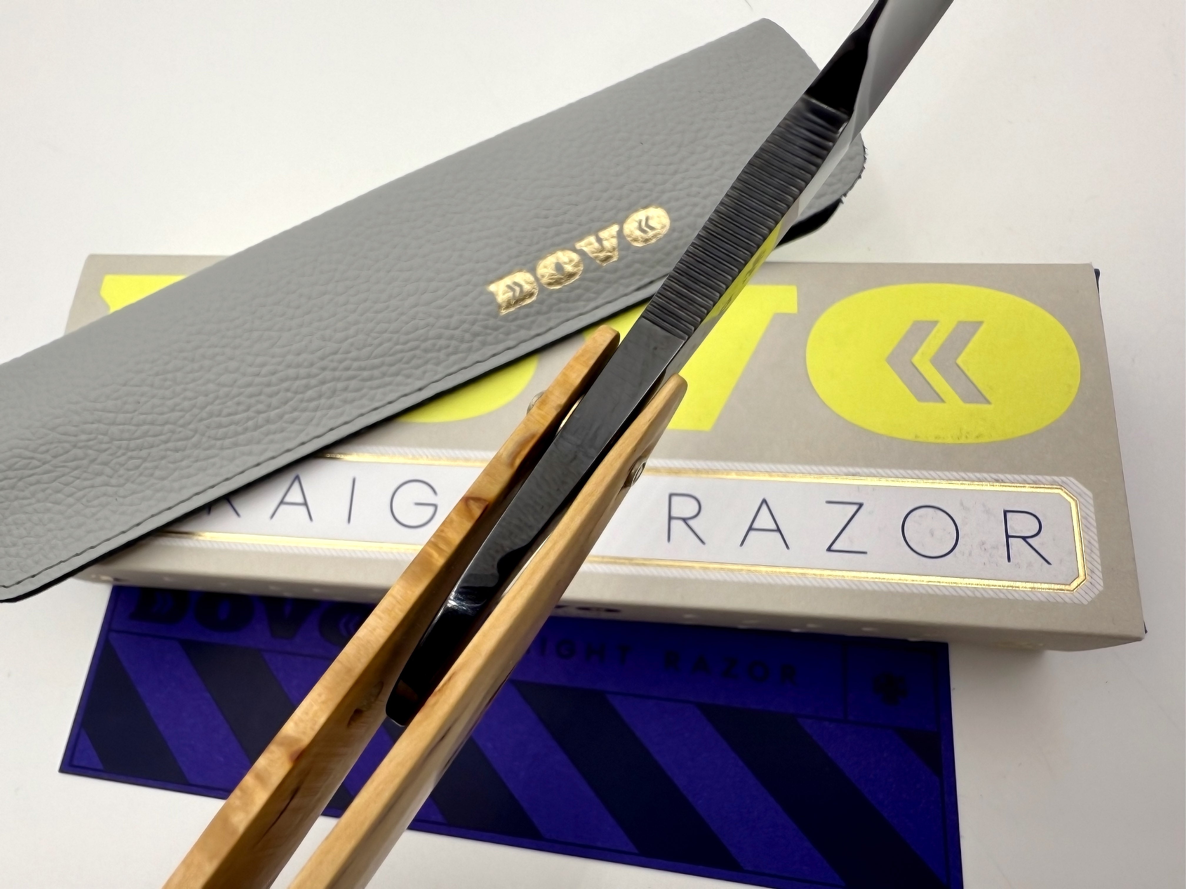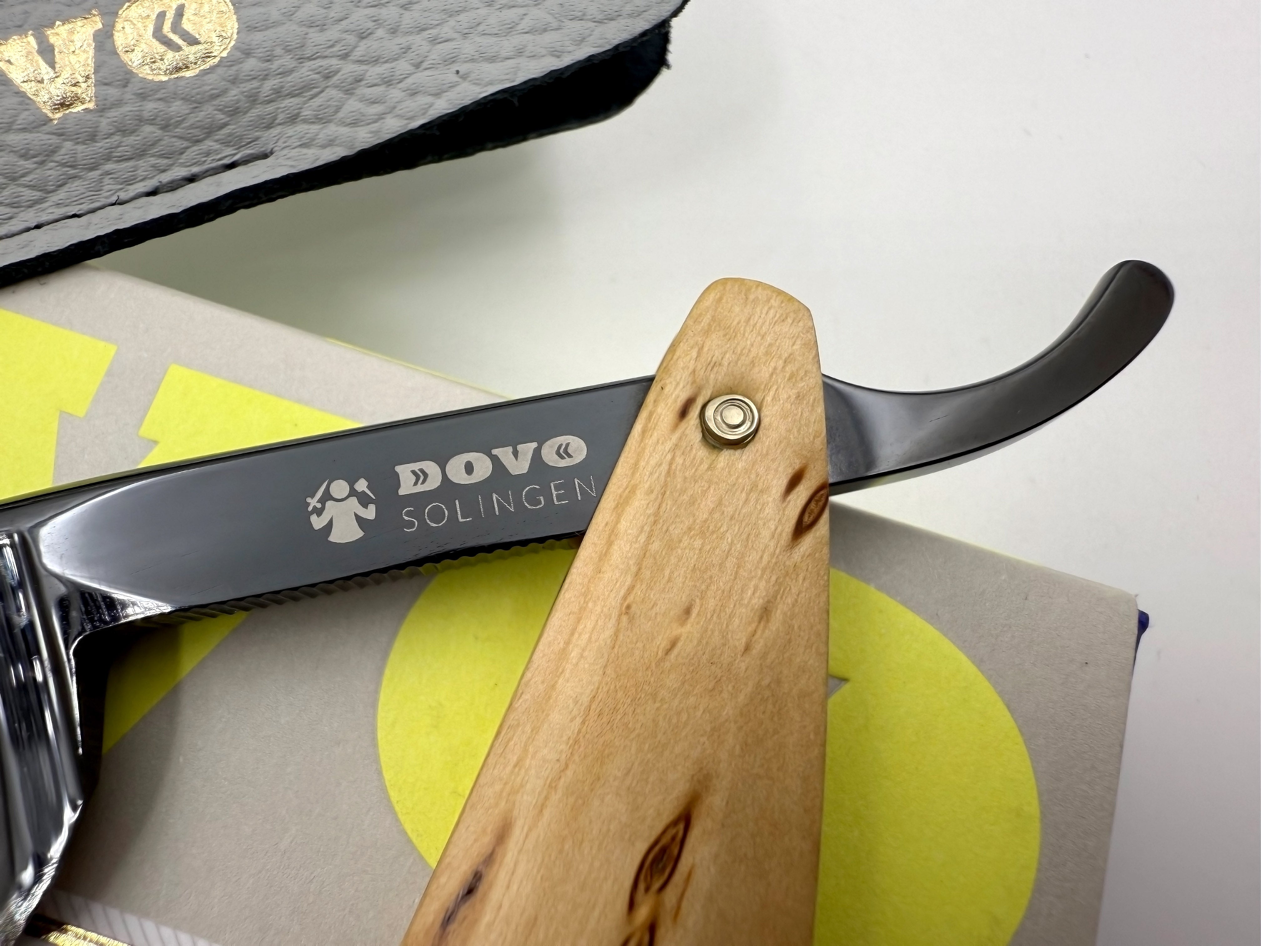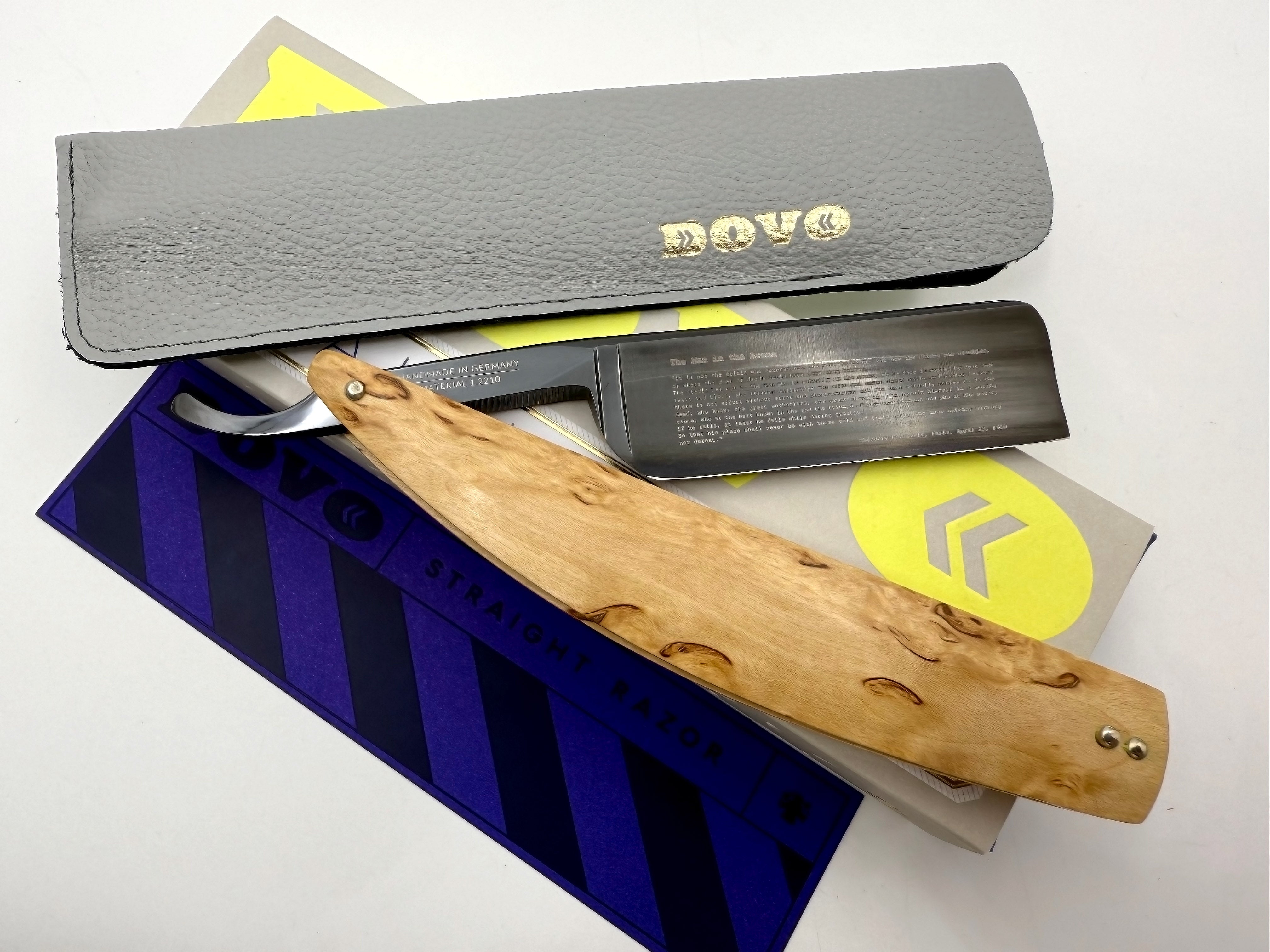 Rasoir droit Dovo "Arena Savannah" 8/8 lame noire avec écailles de bouleau entièrement creuses Solingen