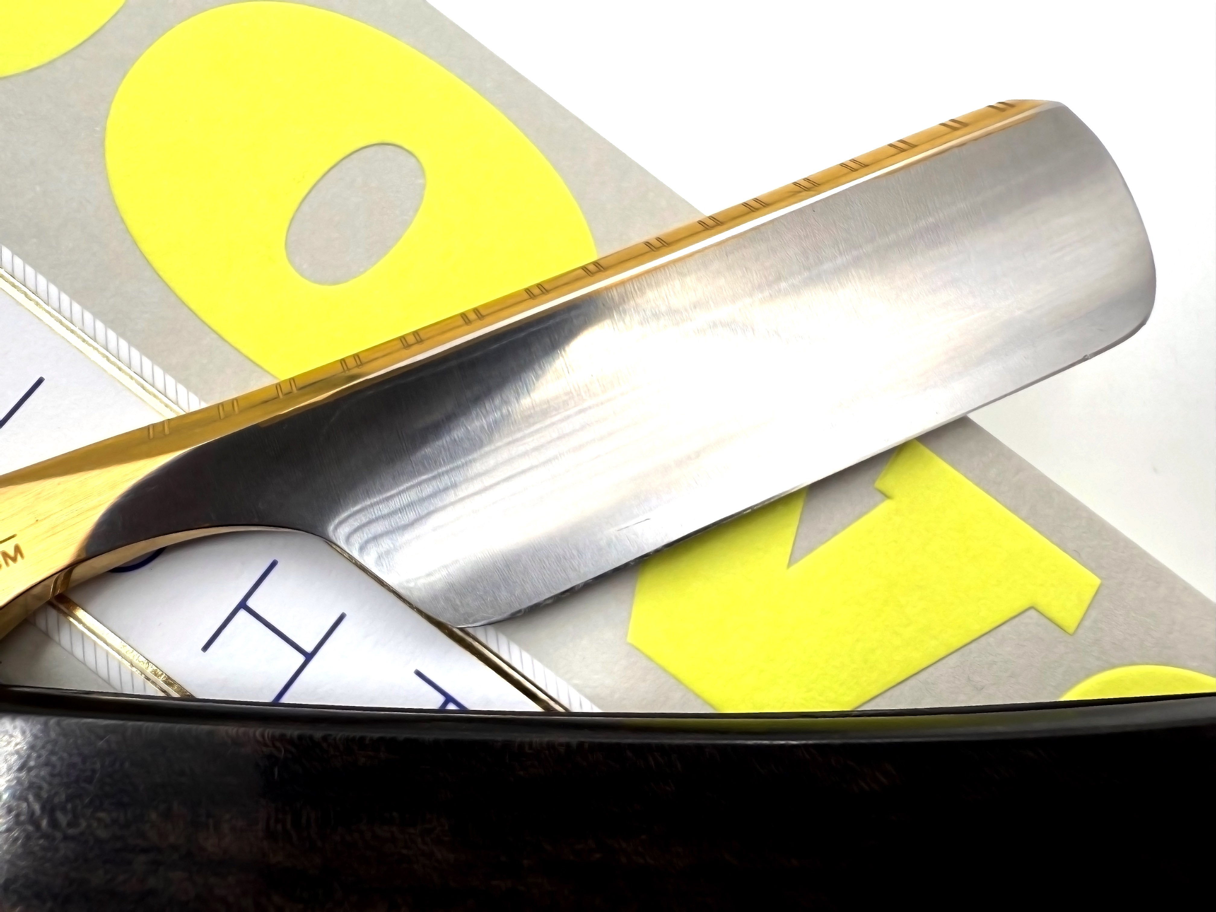 Since many of our customers like to hone their own razors, by default we will ship these razors with the factory edge. However, we will happily hone them to our standards upon request, at no additional charge. If this service is desired please leave us a note at checkout or respond to your order confirmation email and allow an extra 2-3 business days before shipment. If you would like the razor honed without tape on the spine please also specify that in your request.