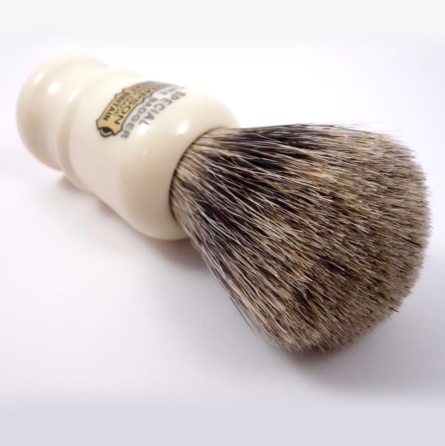 Le modèle Simpson Special est un blaireau légèrement plus petit, densément rempli de poils de blaireau purs dans un manche de couleur crème. Il porte le nom du modèle gravé et le logo Simpson. C'est le blaireau Simpson le plus abordable et également l'un de leurs meilleurs rapports qualité-prix.