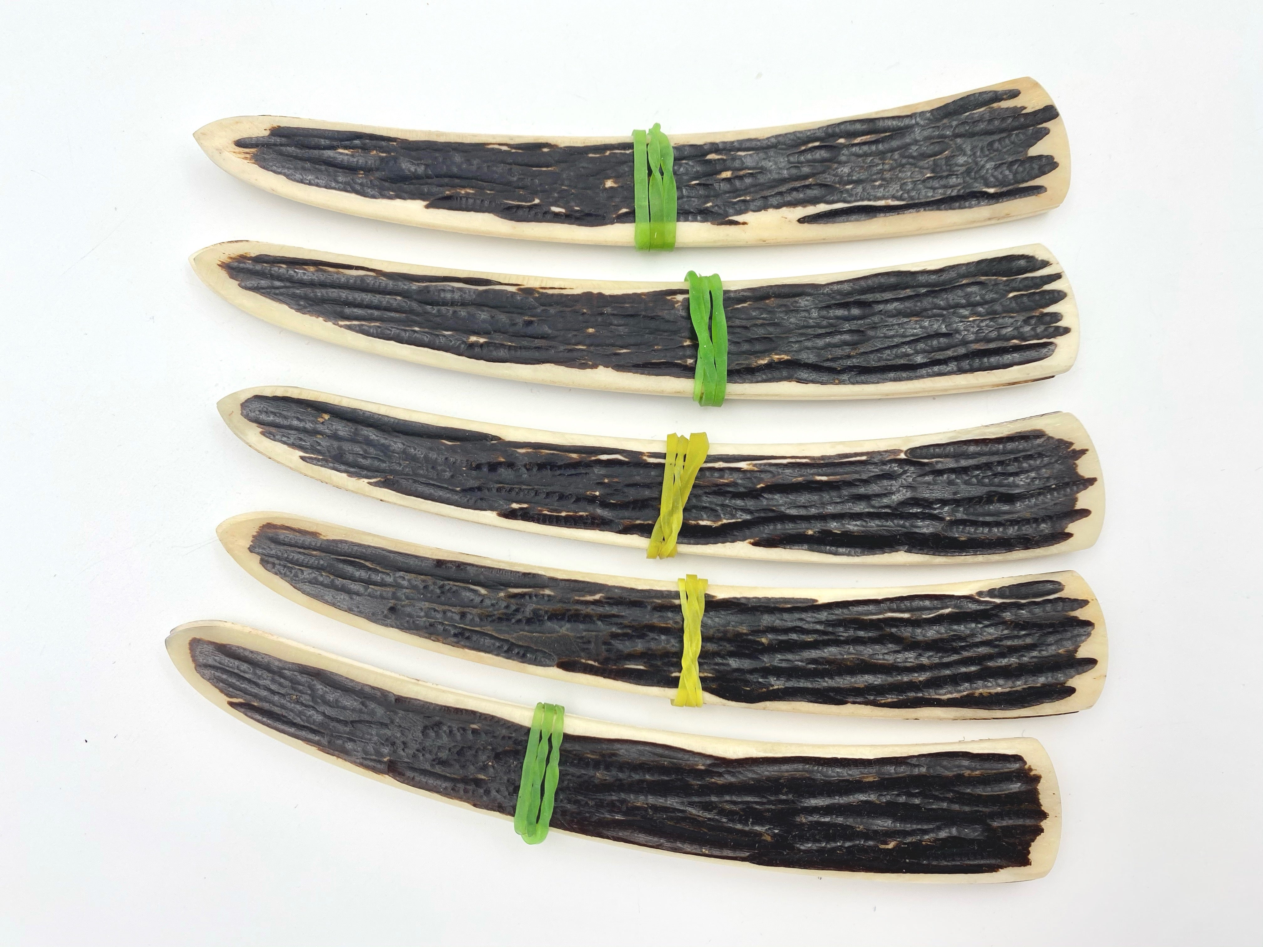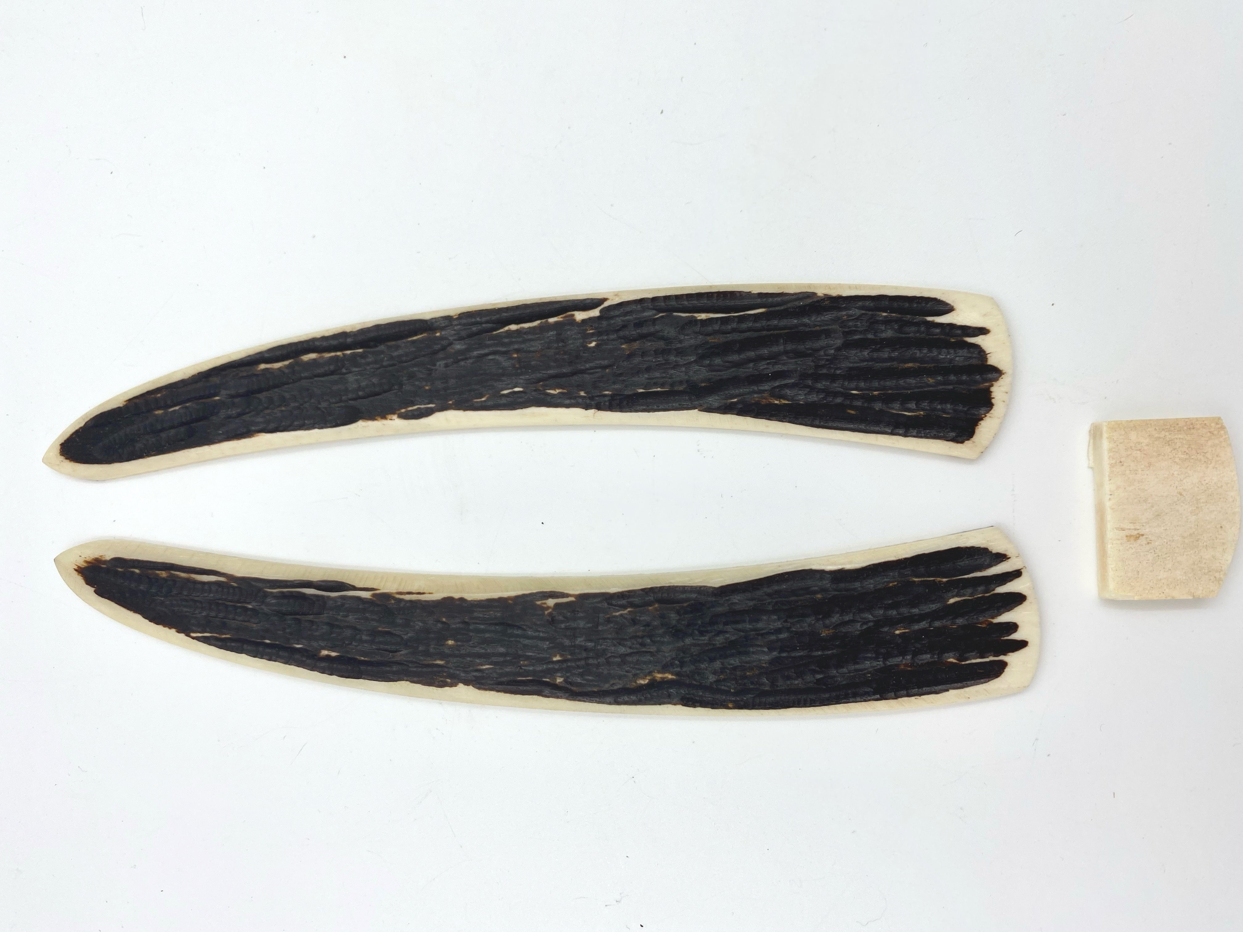 Ces écailles de rasoir sont fabriquées selon nos spécifications en Inde par un fabricant de haute qualité. Elles sont suffisamment grandes pour des lames 7/8-8/8 et éventuellement plus grandes selon la forme, mais peuvent également être modifiées pour s'adapter à des lames plus petites. Mesurant environ 3 mm d'épaisseur, elles ne sont pas trop lourdes et bien finies. Une cale d'espacement osseuse est incluse et peut être poncée pour corriger la forme et l'épaisseur de la cale en fonction de votre lame. Ces écailles ont également beaucoup de matière aux extrémités pour changer la forme de l'extrémité en styles arrondis ou angulaires/pointus. Les surfaces intérieures des écailles sont grossièrement poncées et peuvent être laissées telles quelles ou poncées et polies davantage si vous le souhaitez. Le modèle de ces écailles est illustré, bien que la forme varie légèrement car elles sont fabriquées à la main.