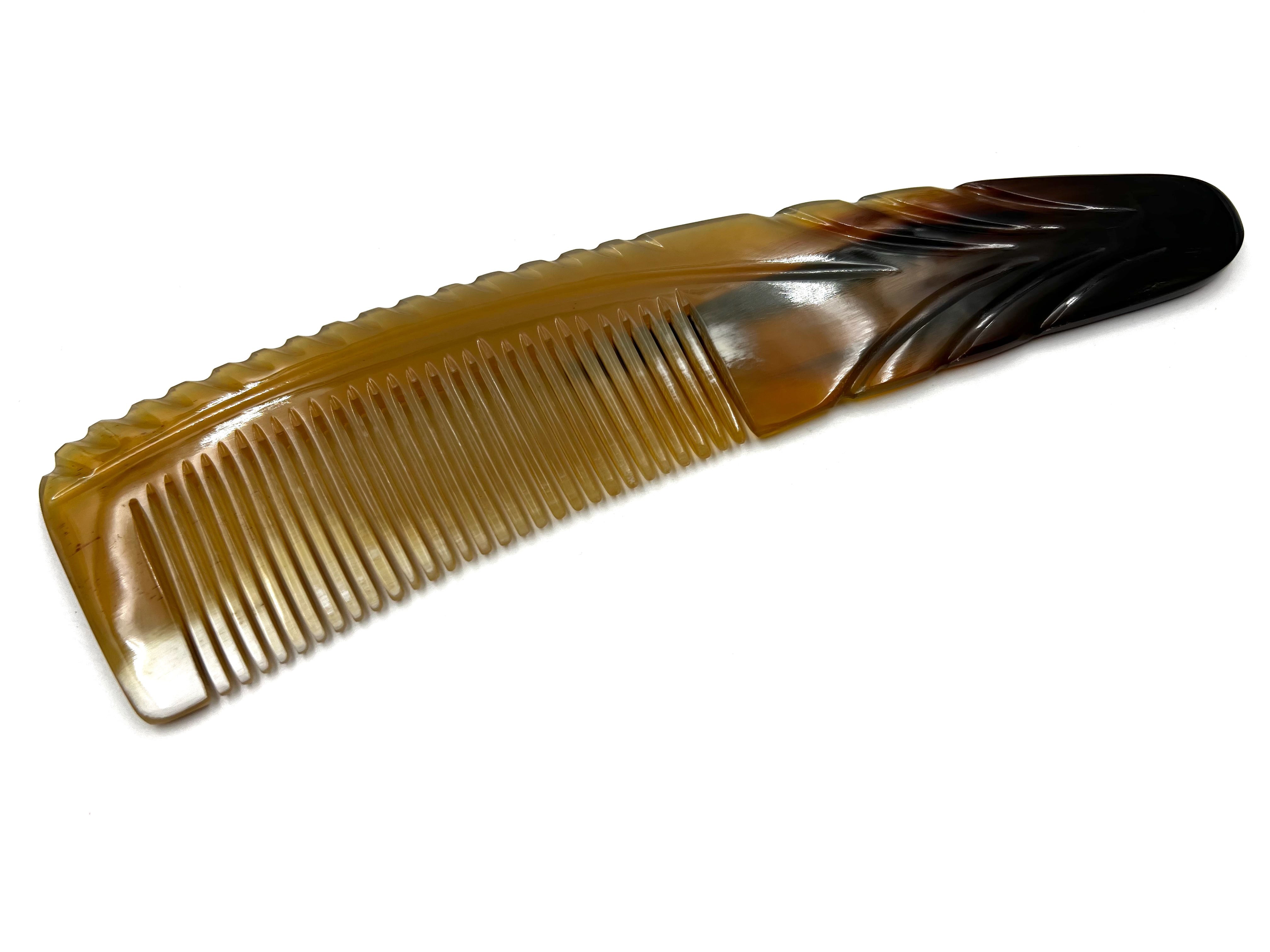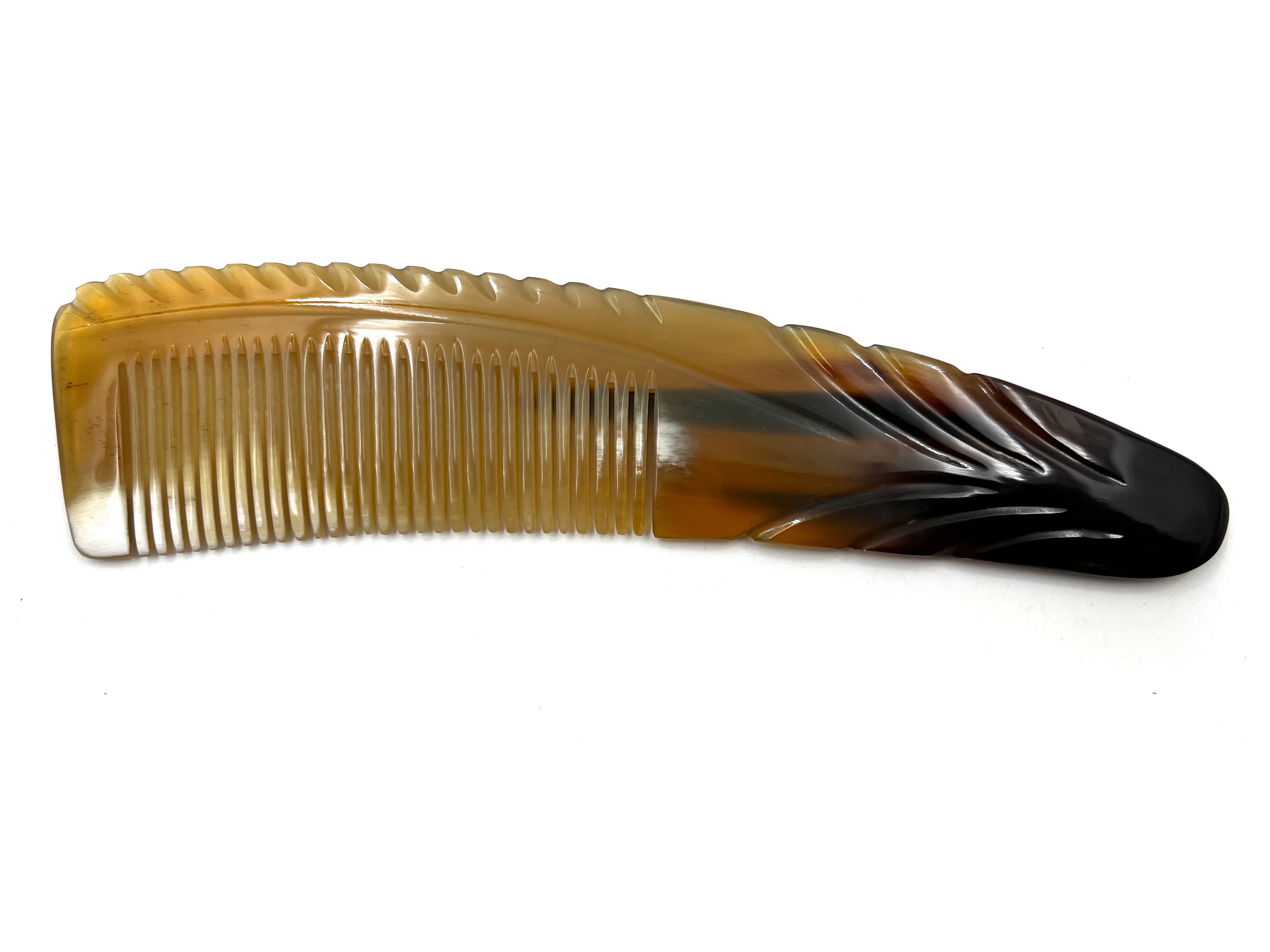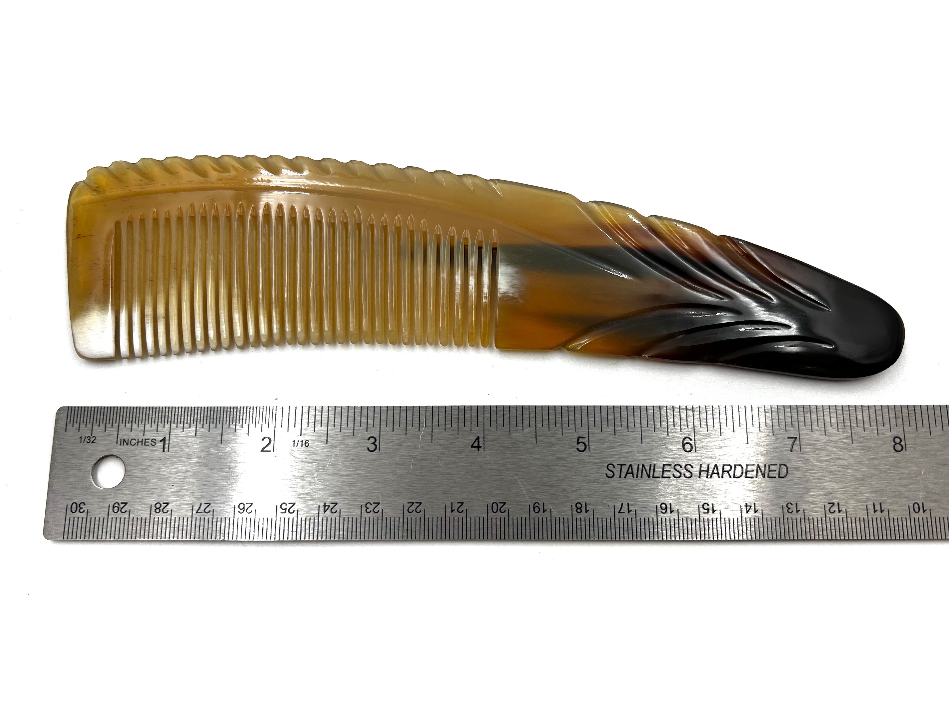 Peigne traditionnel en corne sculptée - Design cannelé incurvé de 8 pouces