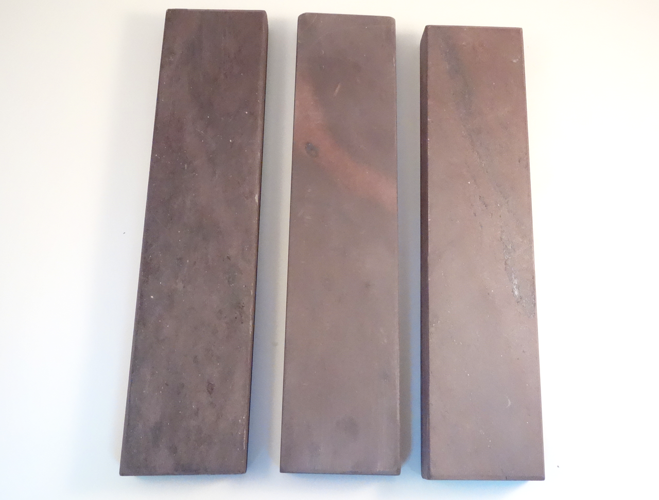 La Lorraine whetstones are well suited for honing fine knives and straight razor honing. They are fast and generate a sharp but smooth edge which is capable for a shave without further finishing. In honing speed and fineness they are somewhere in between between the Belgian Blue Whetstone and the average Coticule.
