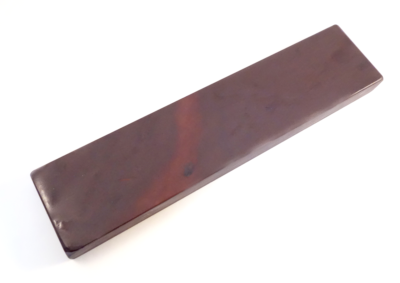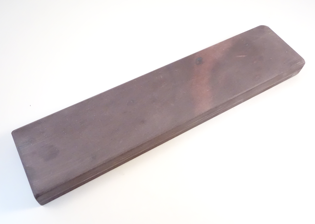 This stone measures 170mm long x 40mm wide and approximately 16mm thick and has been lapped flat by us on one side. It is ready to use for razor honing and a variety of other sharpening purposes.