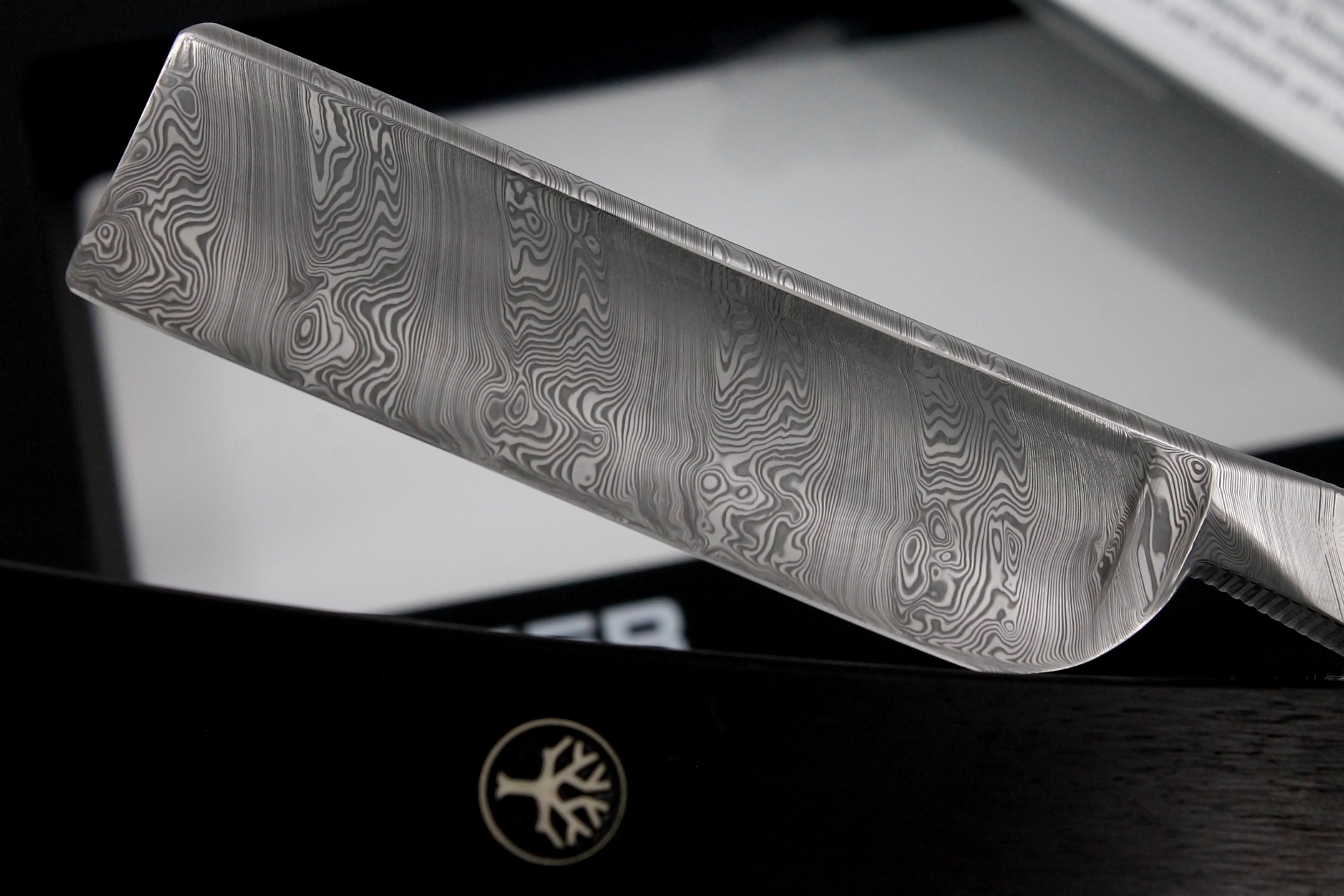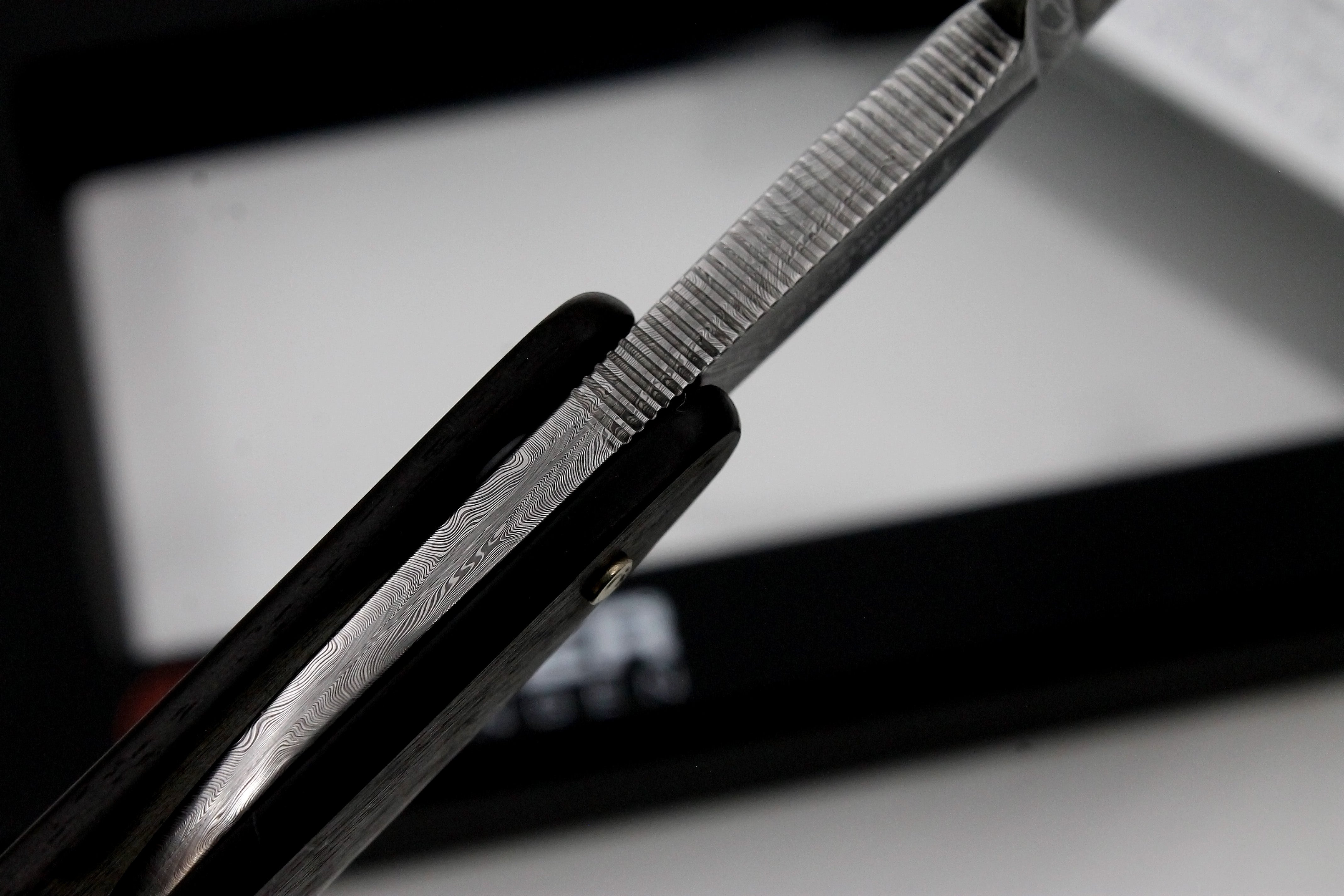 Boker Damascus Ebony 6/8 Blade with Ebony Wood Scales Full Hollow Solingen Straight Razor