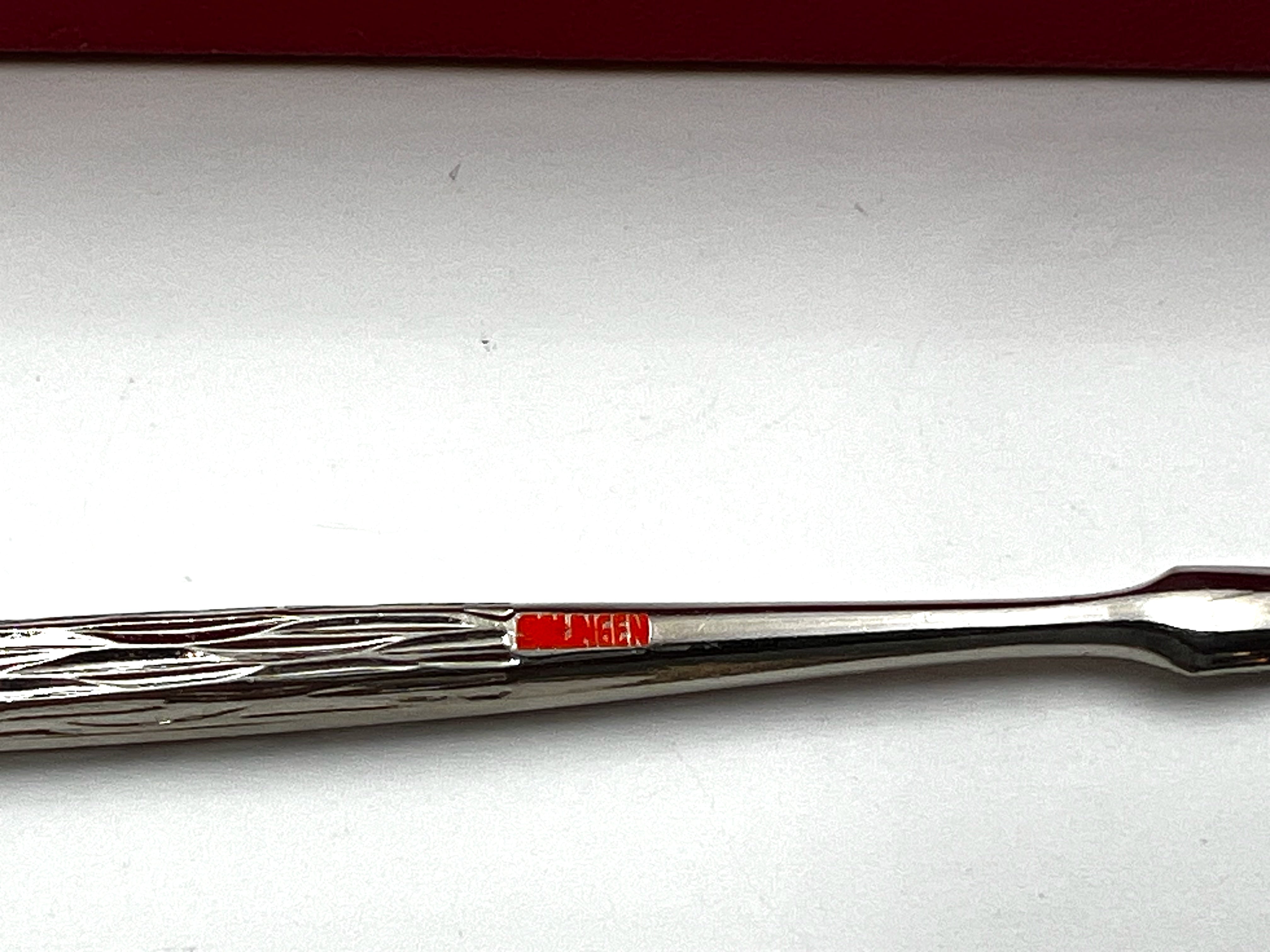 This brand new and in mint condition vintage Dubl Duck No. 29 manicure tool is wonderful for cleaning and maintaining cuticles, nails and more. Made in Solingen for the PearlDuck Company and made circa 1950s-1960s, these are a rare find which will undoubtedly come in handy in your grooming routine.
