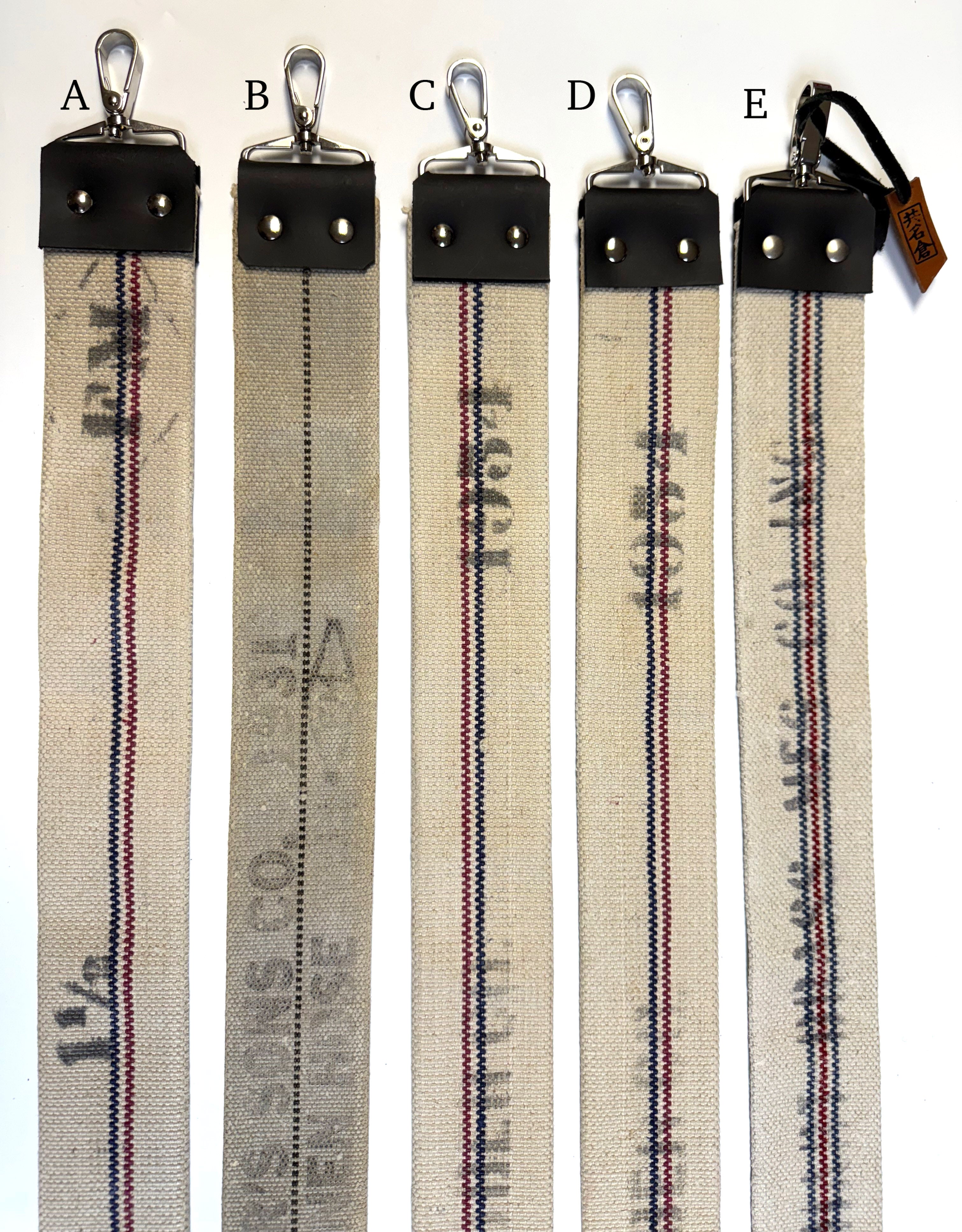 These strops, made by Keith Johnson of New York from vintage 100% flax linen firehose are some of the best for your razor's edge. Soft and supple and ready for use on your finest razors, they are highly effective at clearing debris and leave a distinct finish on a honed edge. The off-white hose shows some minor stains and wear from its firefighting history. It features a chrome-plated steel hook, nickel-plated brass rivets, steer hide ends, and hand-stitched cotton thread. Each strop is handmade, with slight imperfections like asymmetrical leather and visible wear, reflecting its authenticity and craftsmanship.