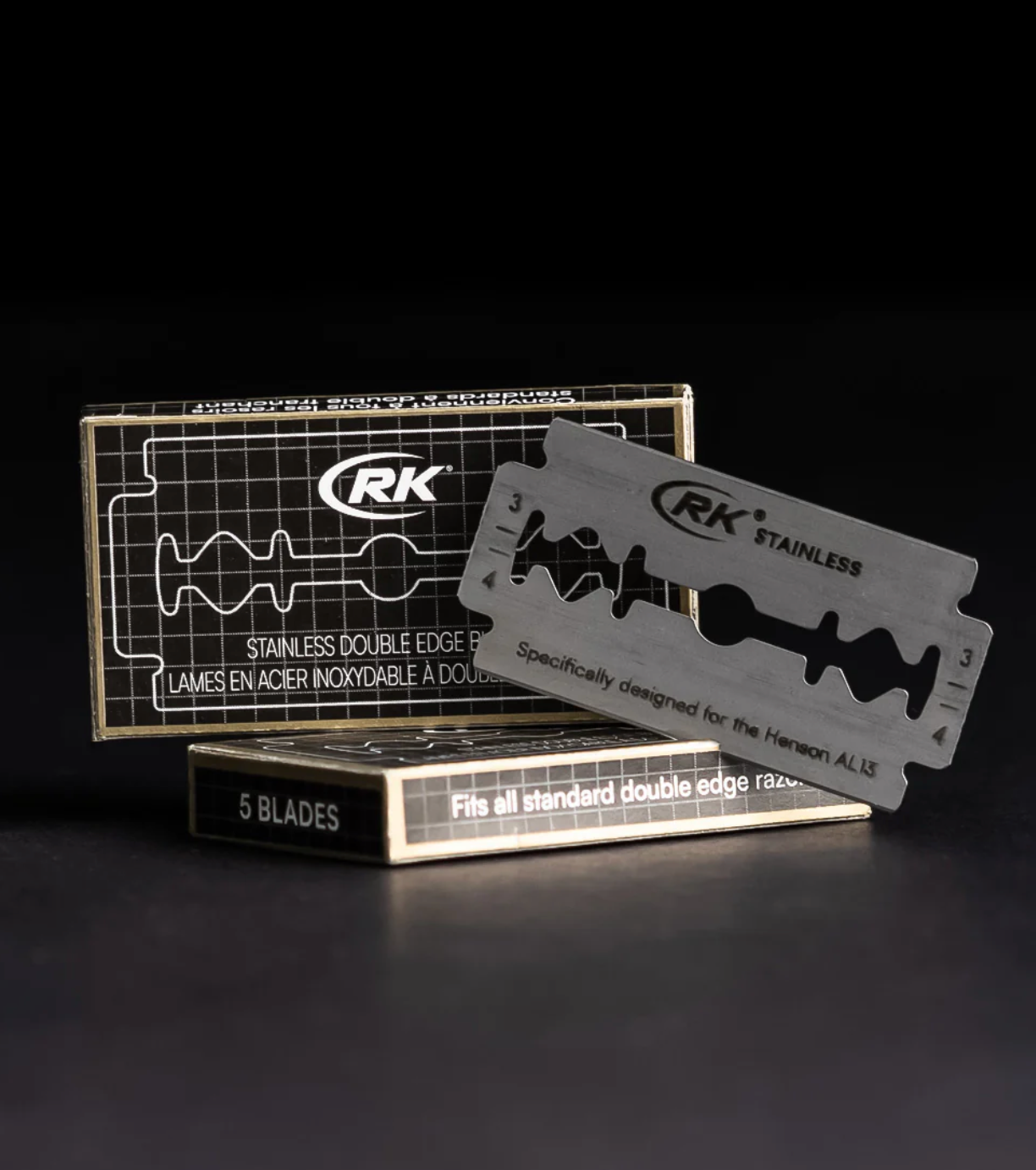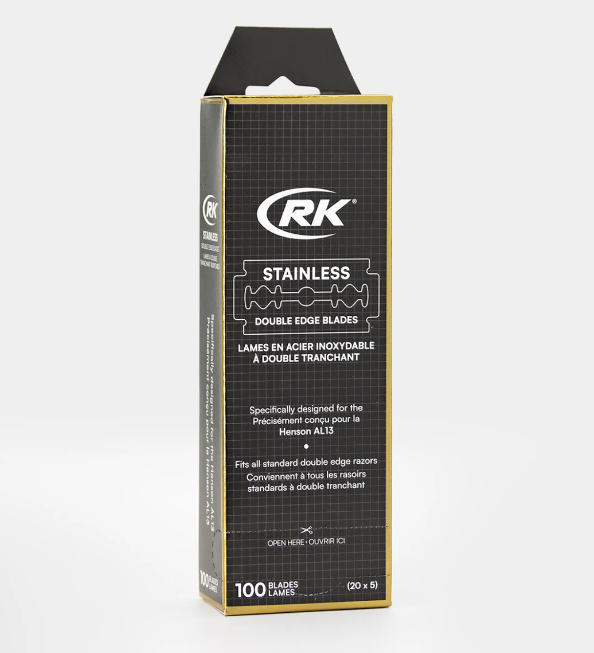 These stainless steel, double edge blades are specifically made to the dimensions of the Henson AL13. RK Shaving double-edged blades have an extremely high quality of manufacturing with consistent performance and sharpness that performs well when paired with the Henson AL13 (or Ti22). A 100 pack of blades should last the typical shaver 2-3 years.