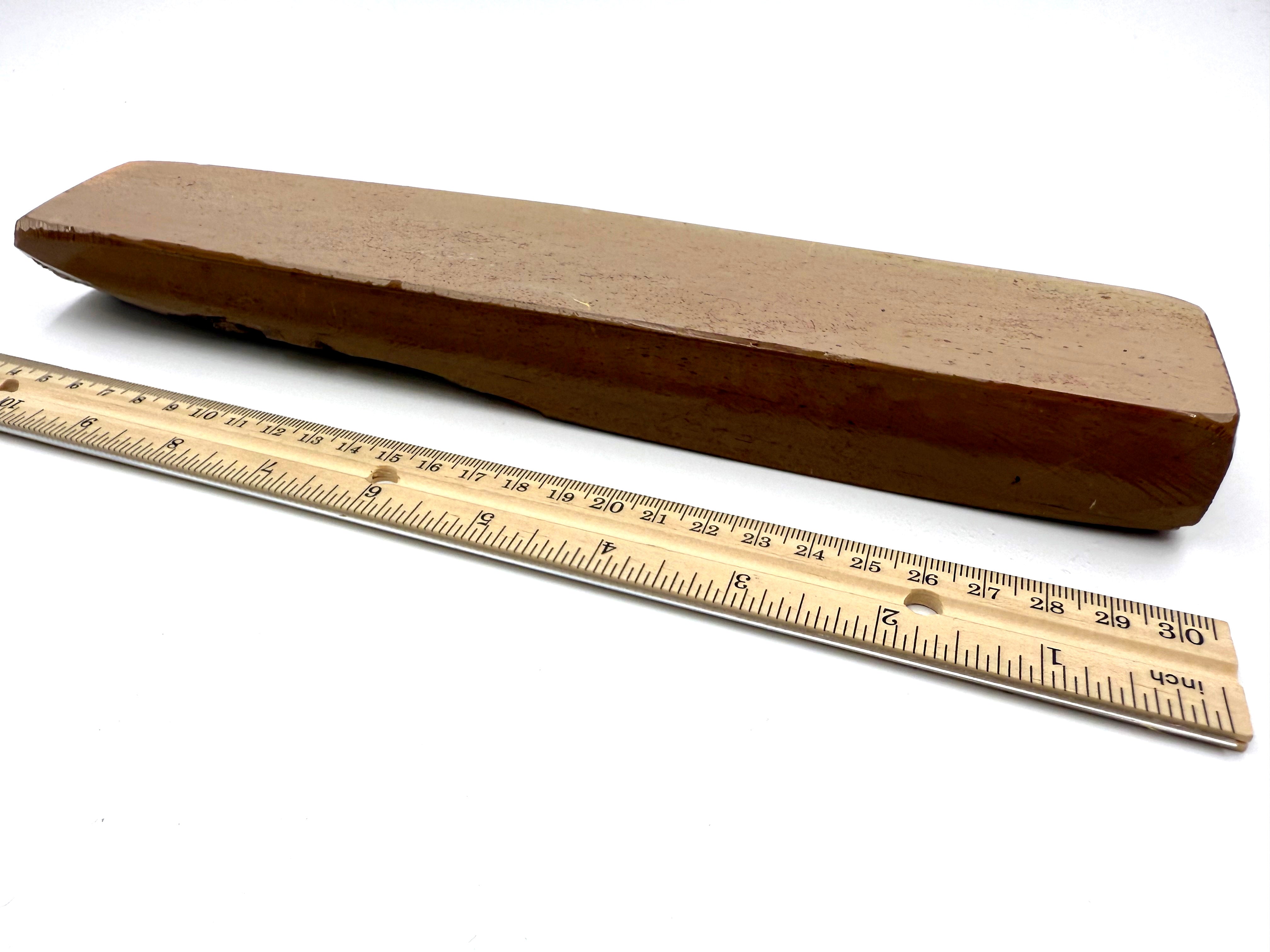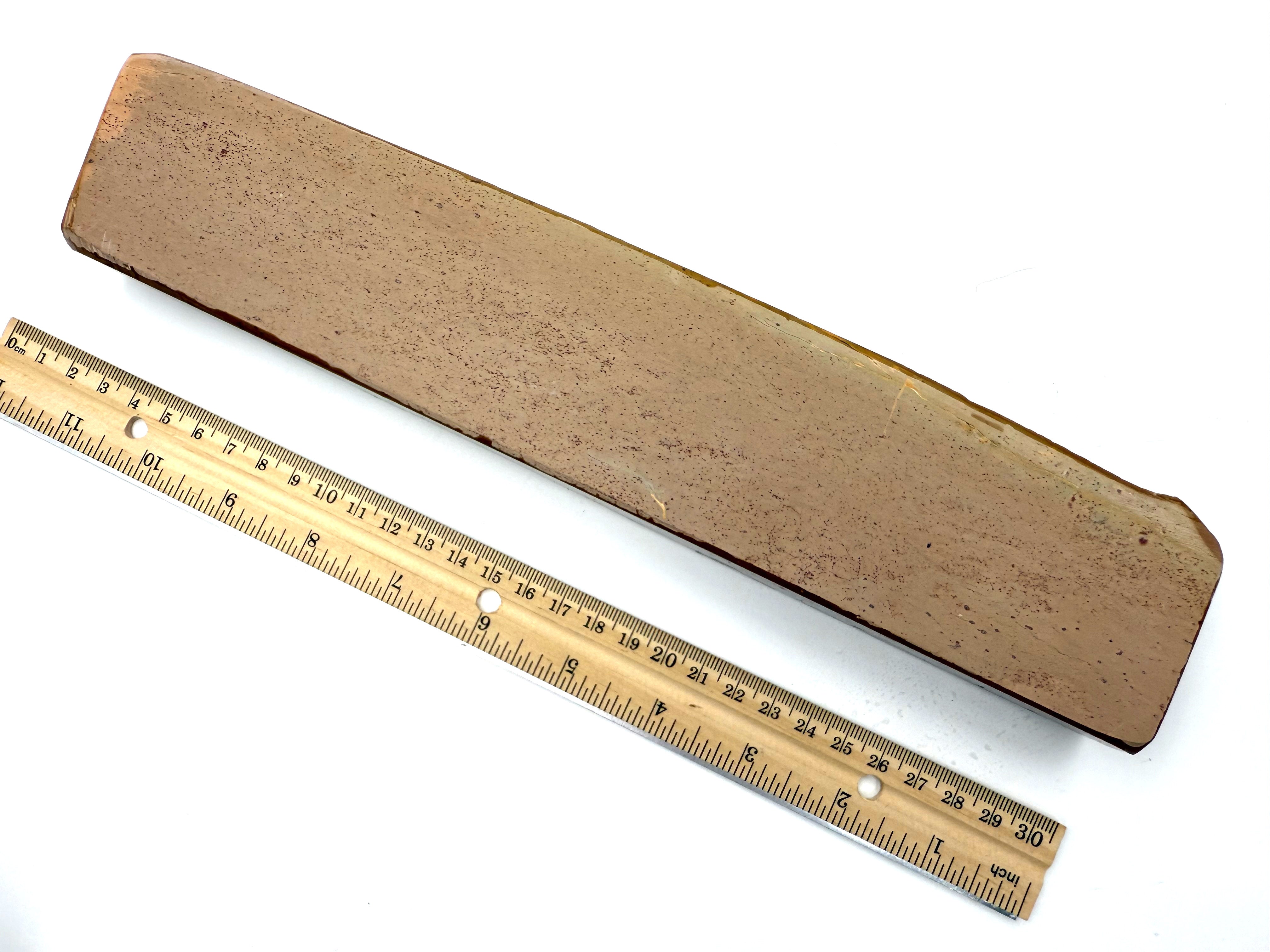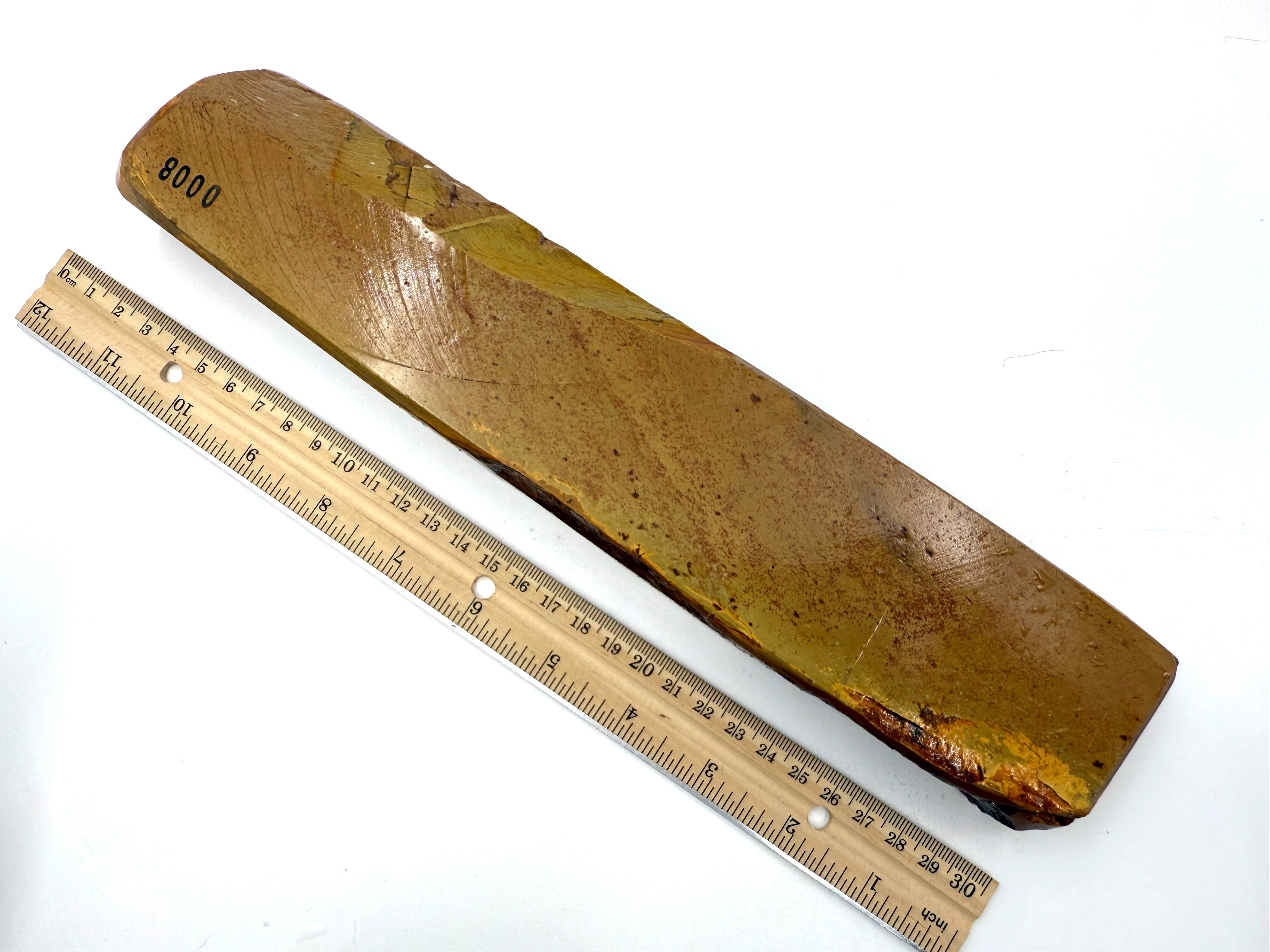 This Japanese whetstone was cut by us from raw stone purchased by us directly from Japan, then thoroughly tested and coated with cashew lacquer on sides and back to protect the stone for long term use. It measures 285 mm (11.22 in) long × 60 mm (2.36 in) wide × 30 mm (1.18 in) thick, and weighs 1135g (40.04 oz / 2.50 lbs).