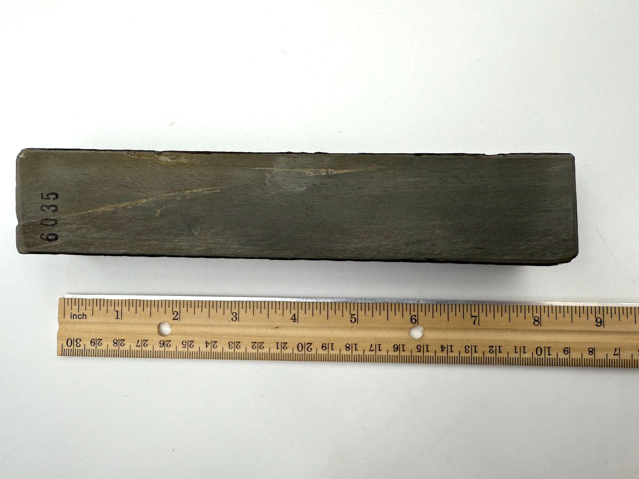 A semi soft, standard grade Akamonzen Red Aoto. This stone has a few small lines on the surface which can cause small scratches in soft iron cladding. They do not scratch hardened steel, therefore making them perfect for razor medium grit honing. The stone can set bevels where no major damage has been done to the edge. They also serve well in scratch removal of a bevel setting stone. These Aoto have wonderful range as they can be used to take the edge from bevel set to pre finish with one stone. The scratches left by the stone are more shallow and uniform when compared to a synthetic stone making them perfect for setting the stage for a final finisher as the scratches are easily removed compared to the scratches from a synthetic stone.
