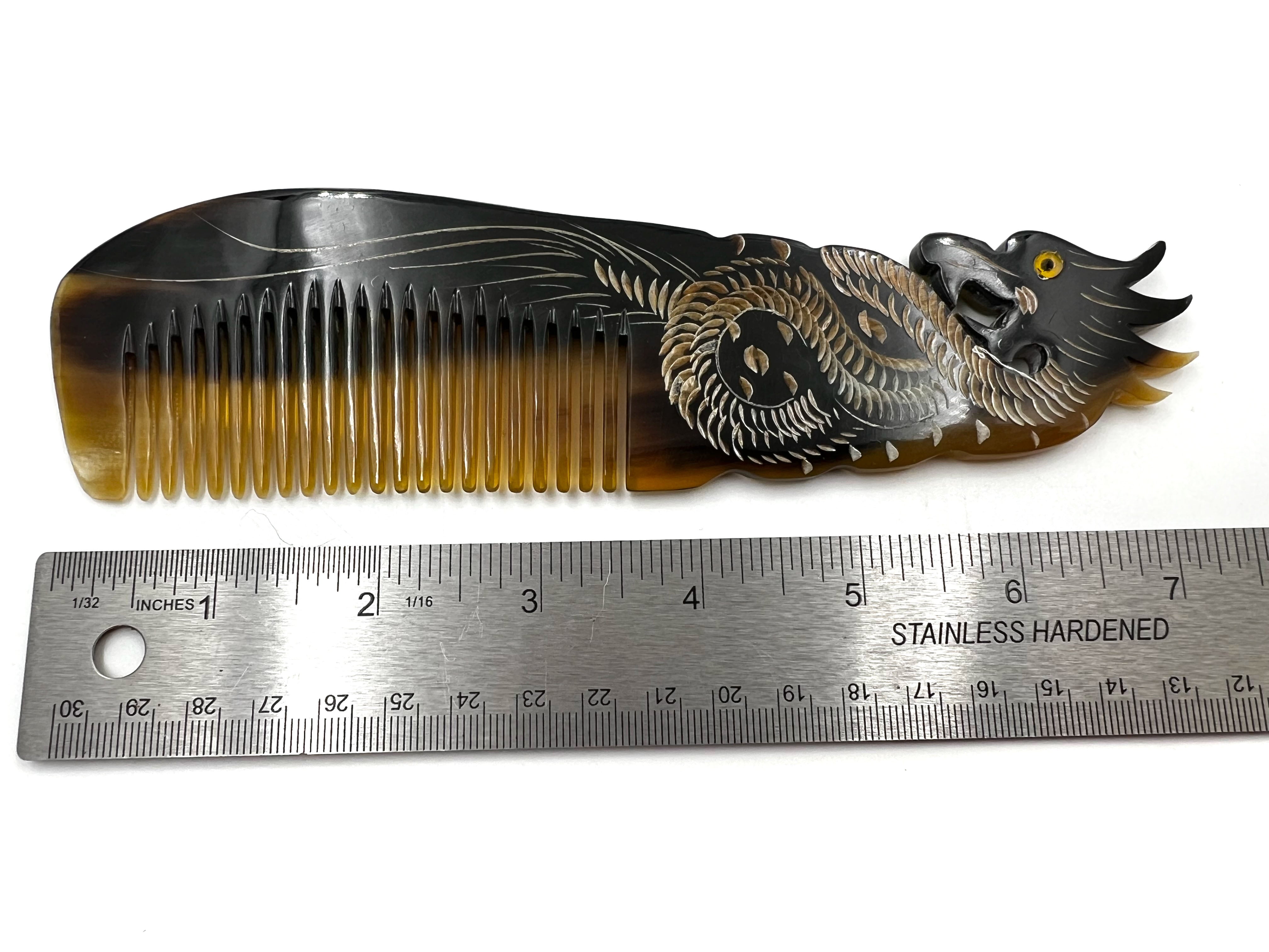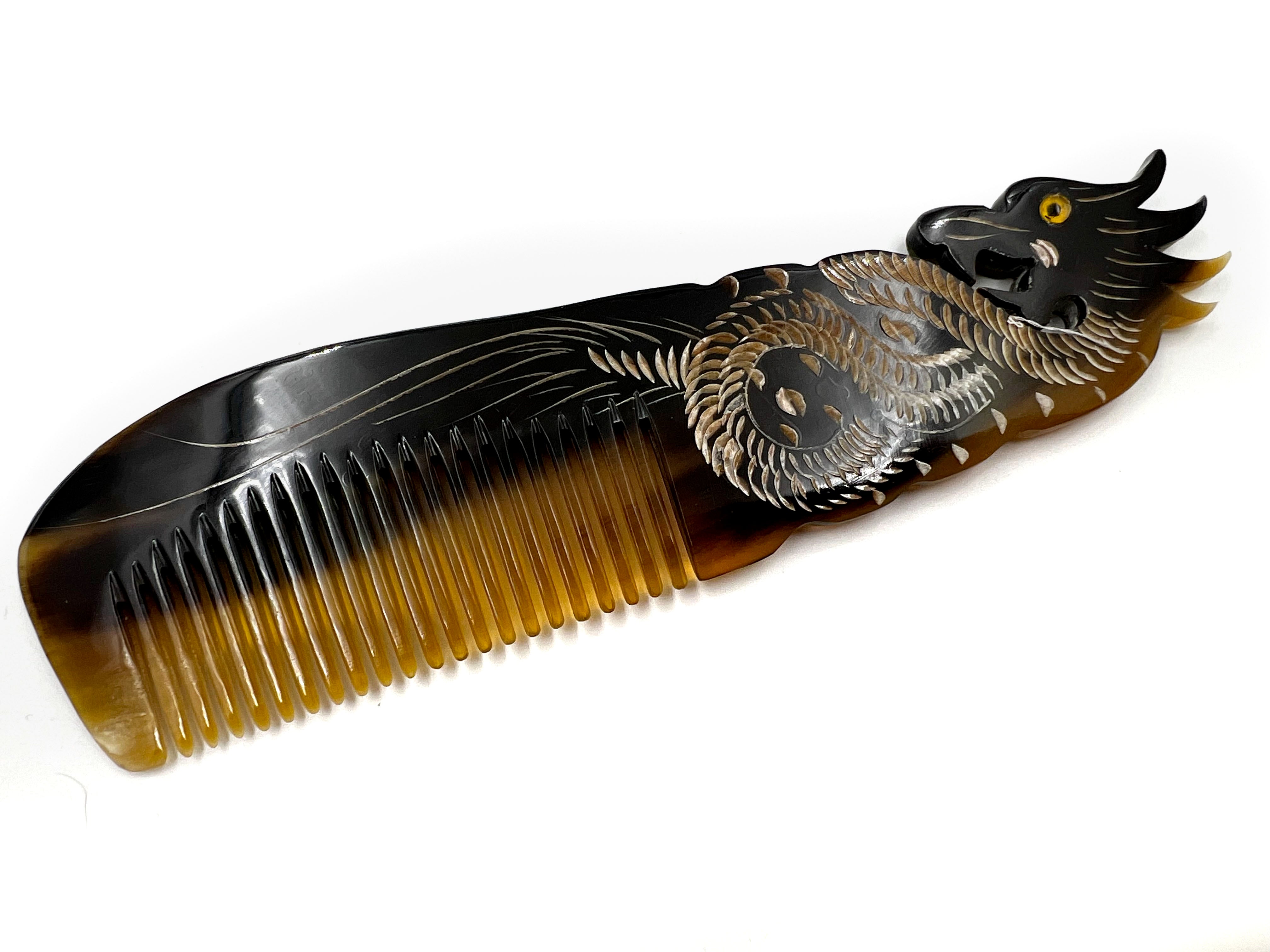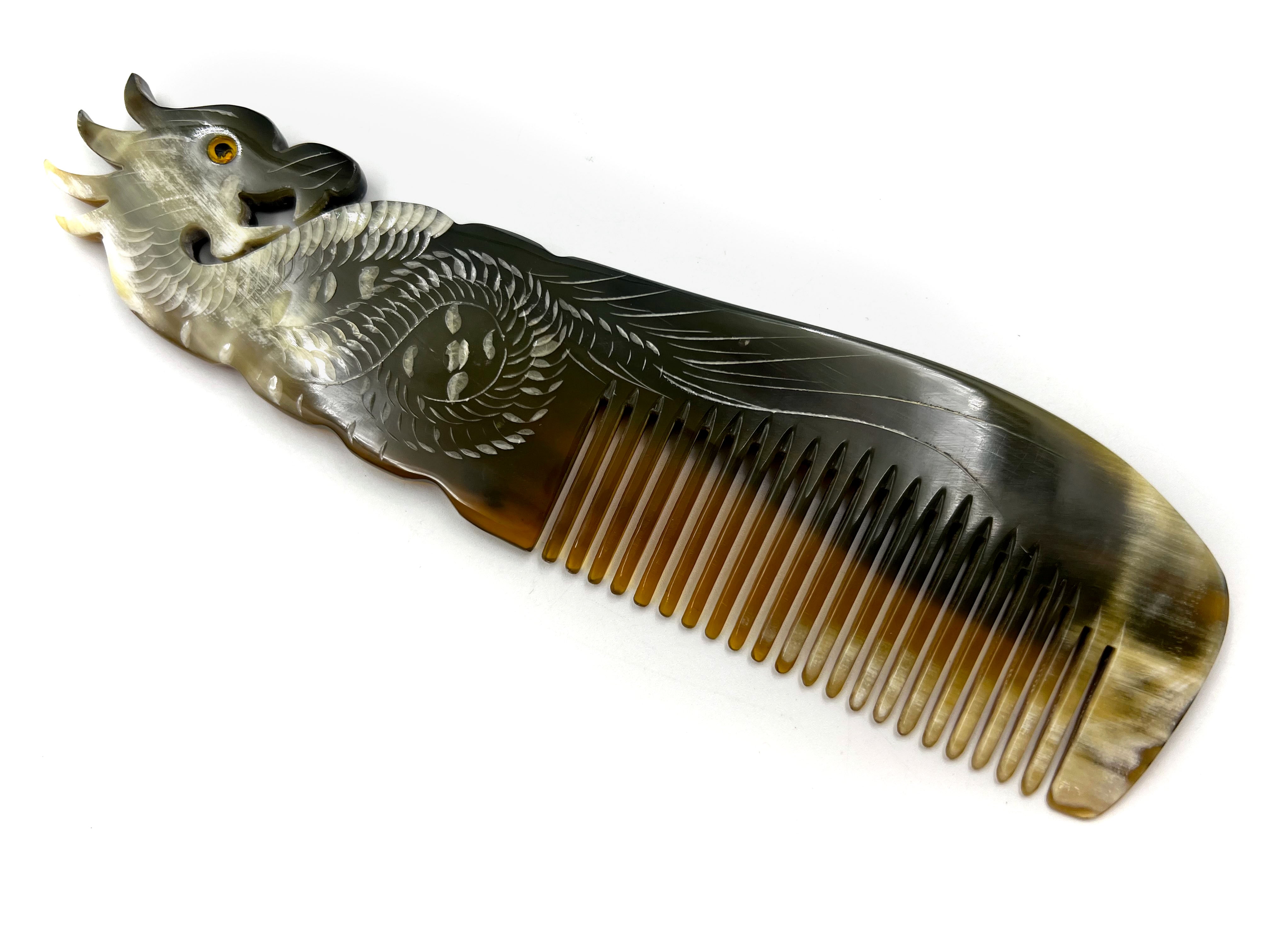 Traditional Carved Horn Comb - 8 inch Dragon Design