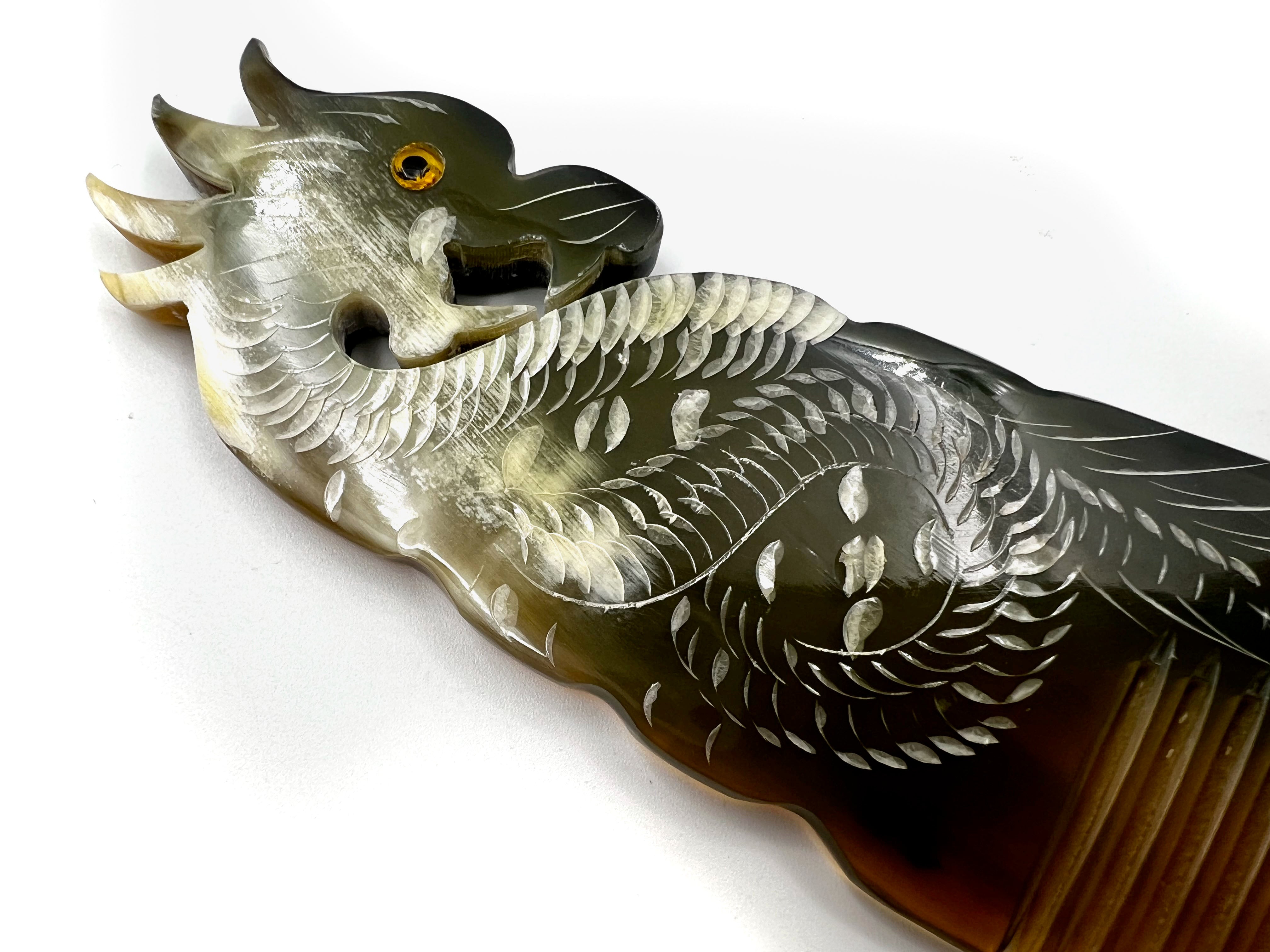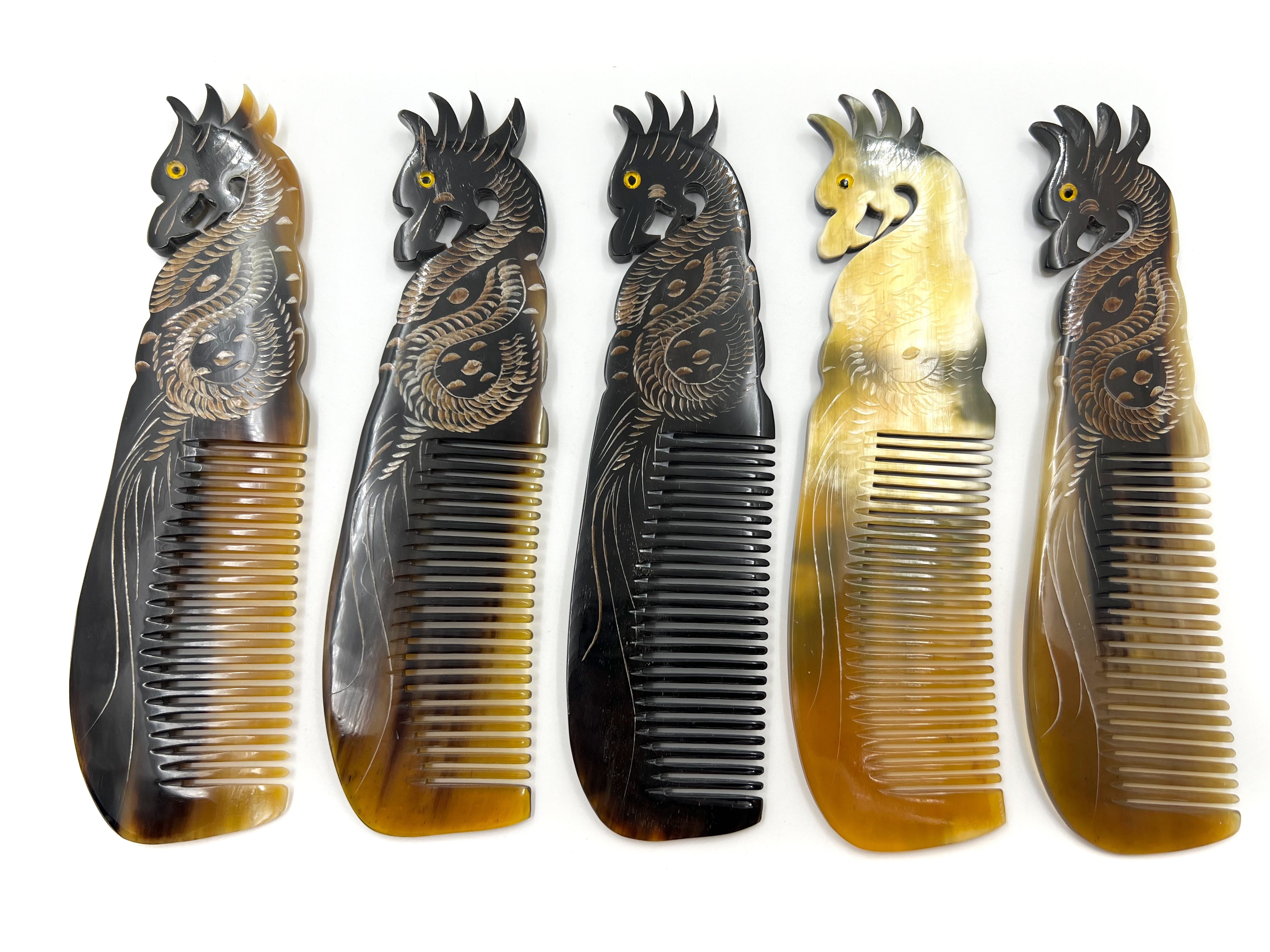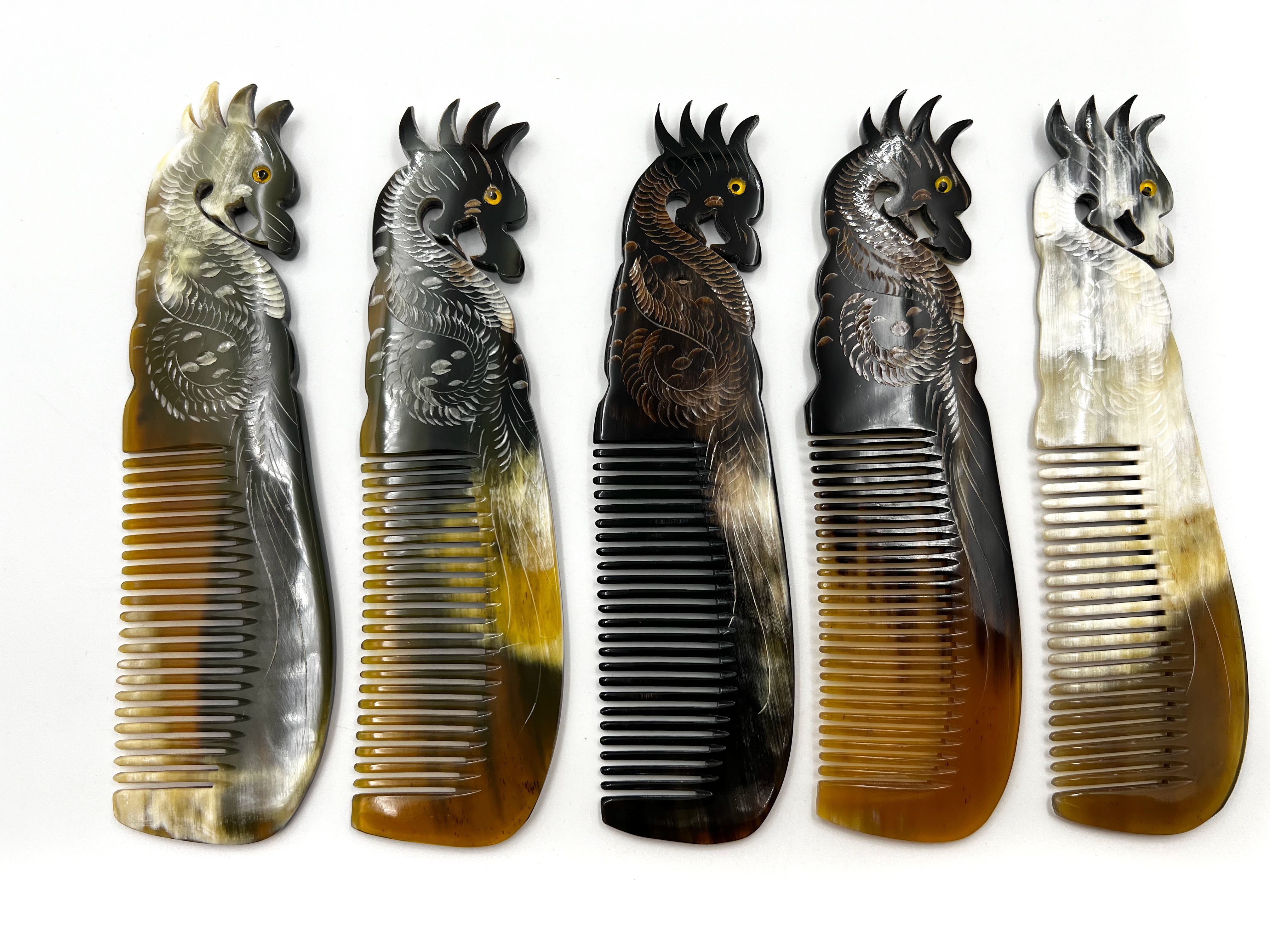 Traditional Carved Horn Comb - 8 inch Dragon Design