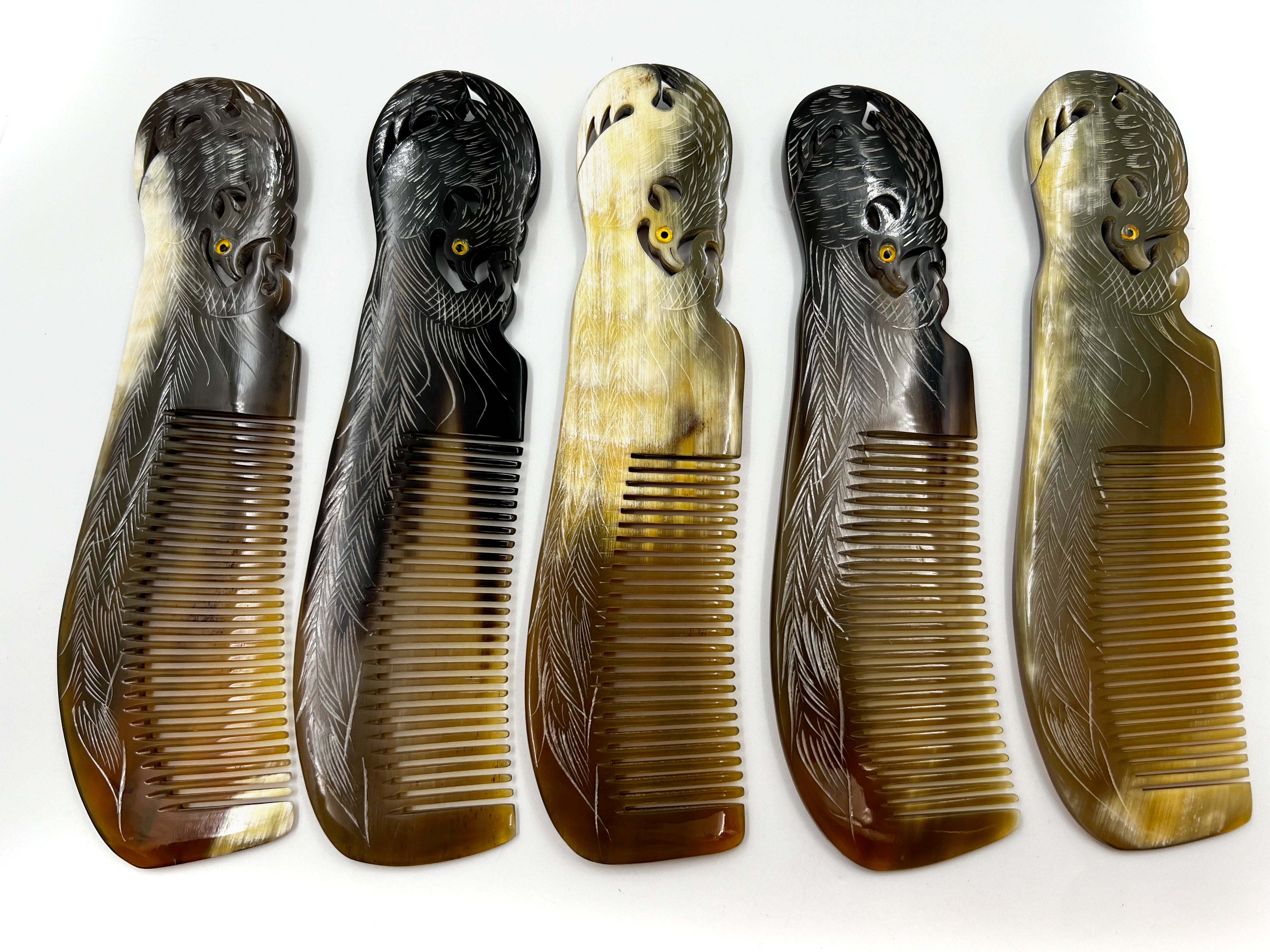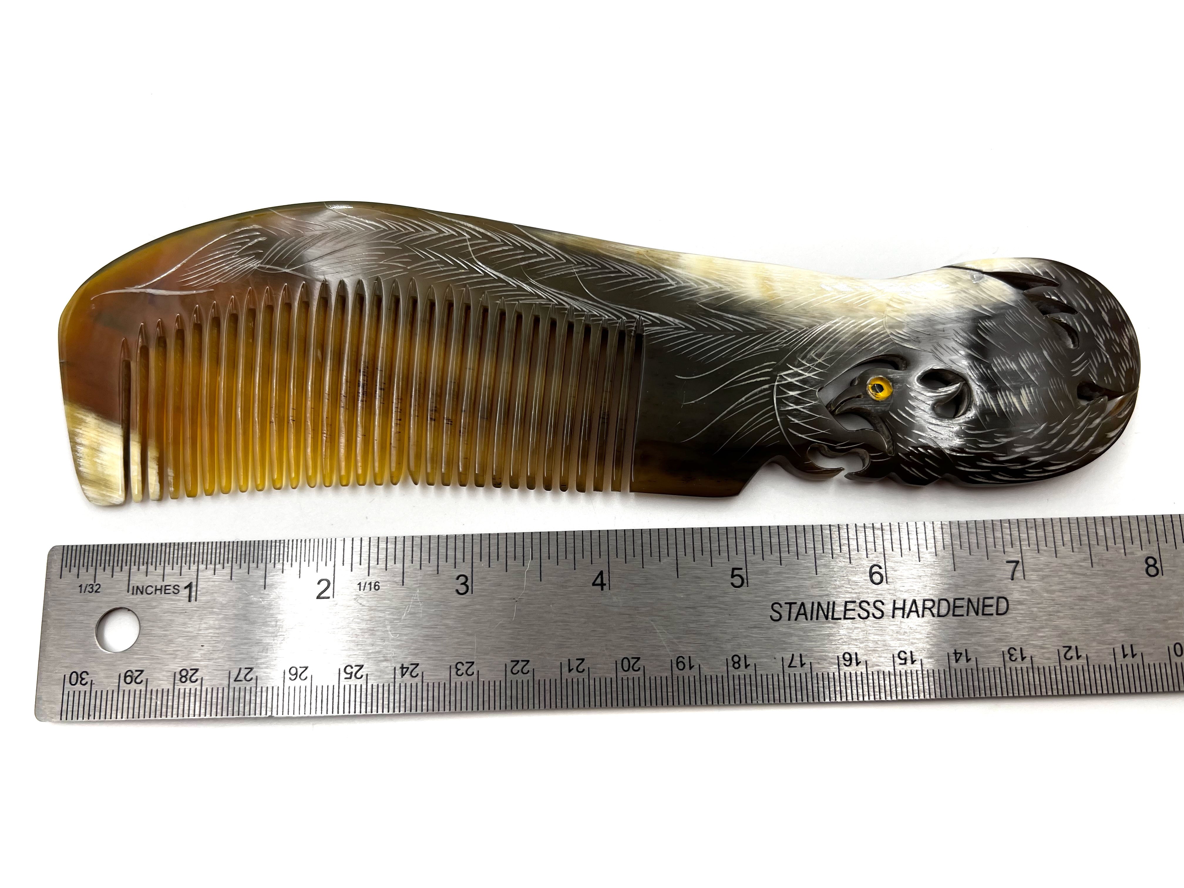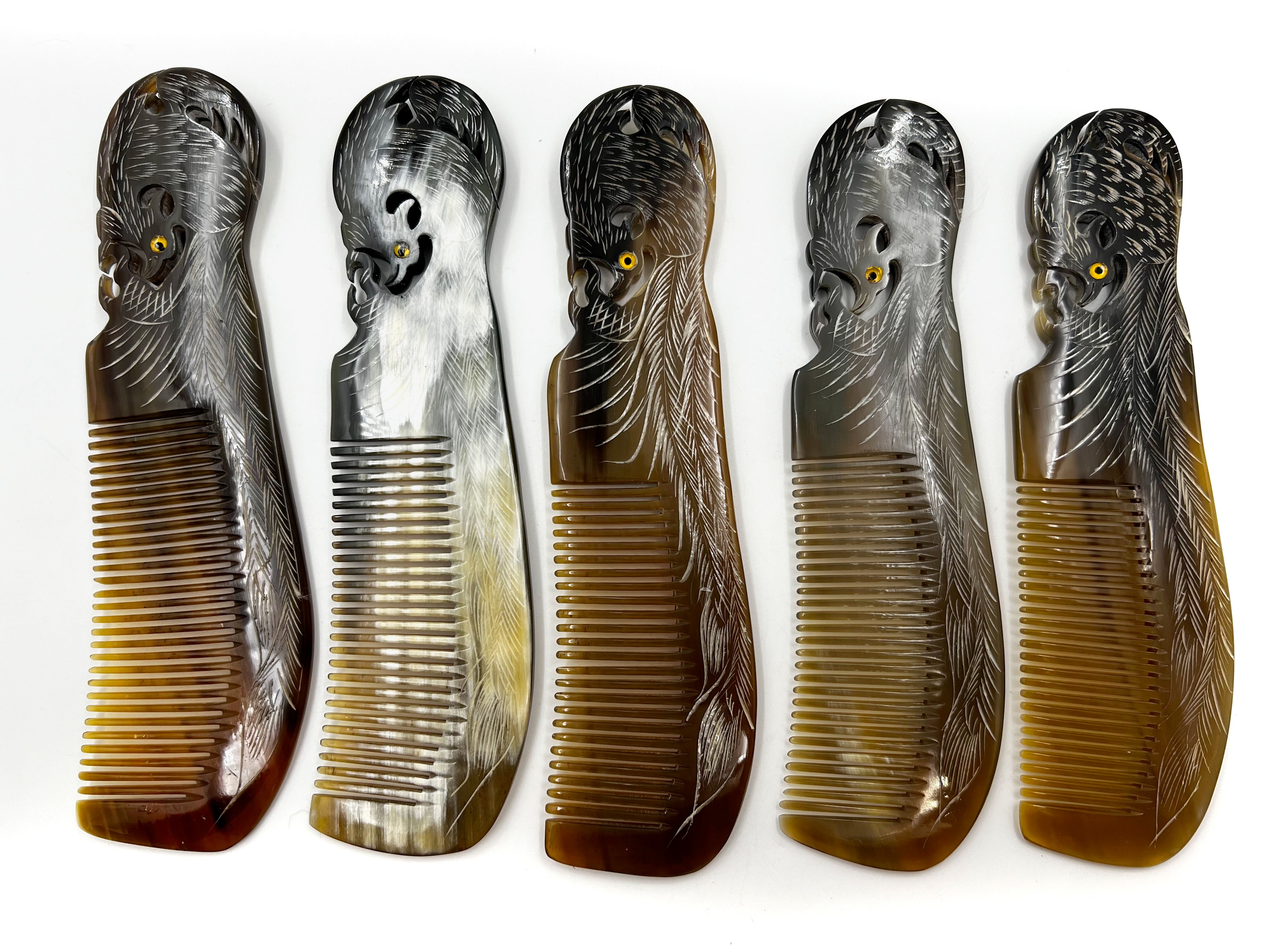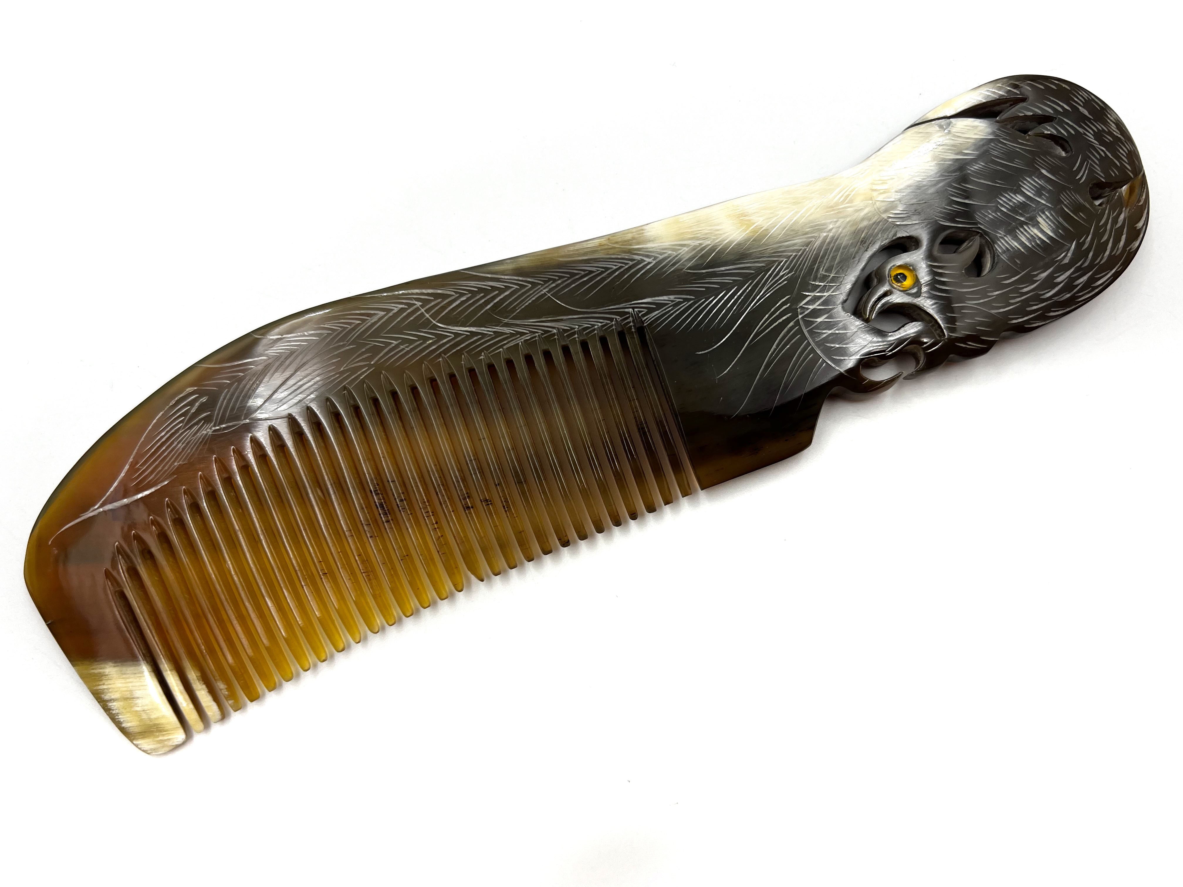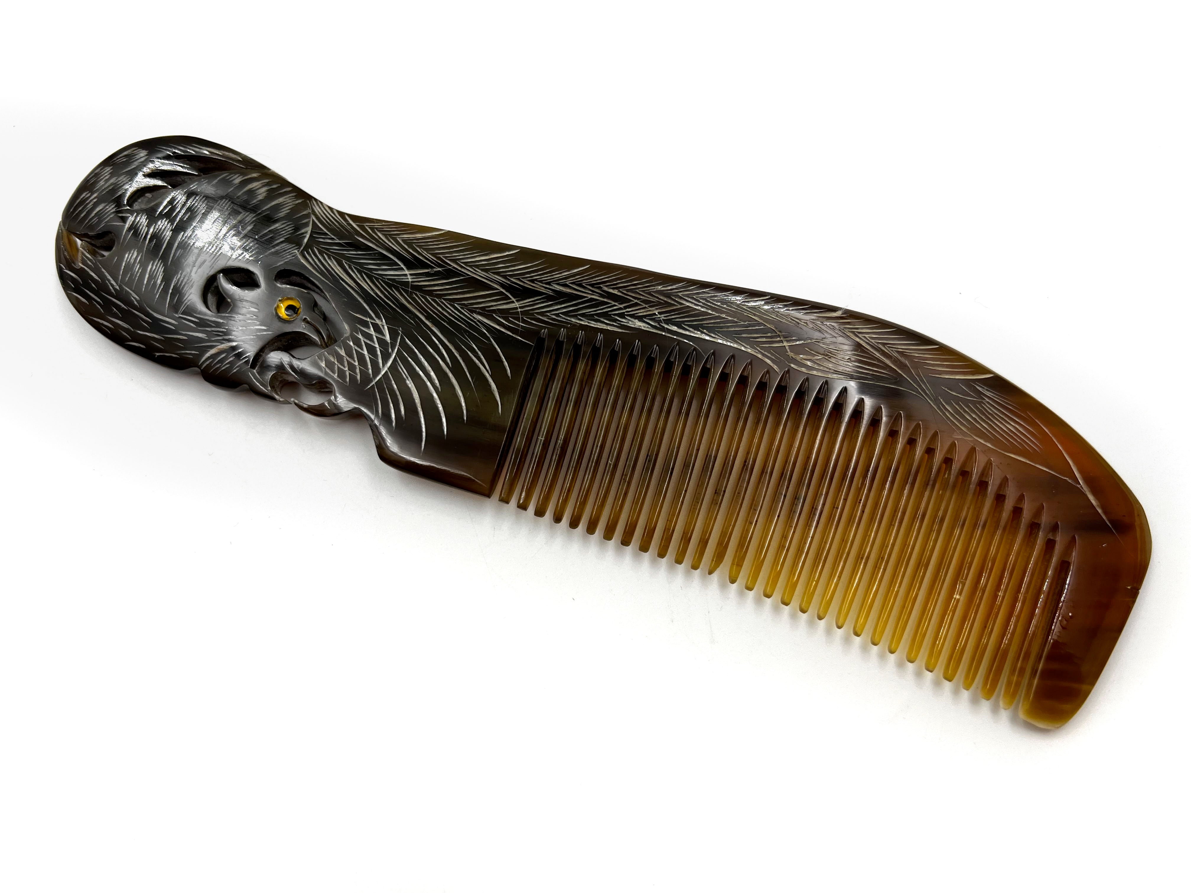 Traditional Carved Horn Comb - 8 inch Phoenix Design