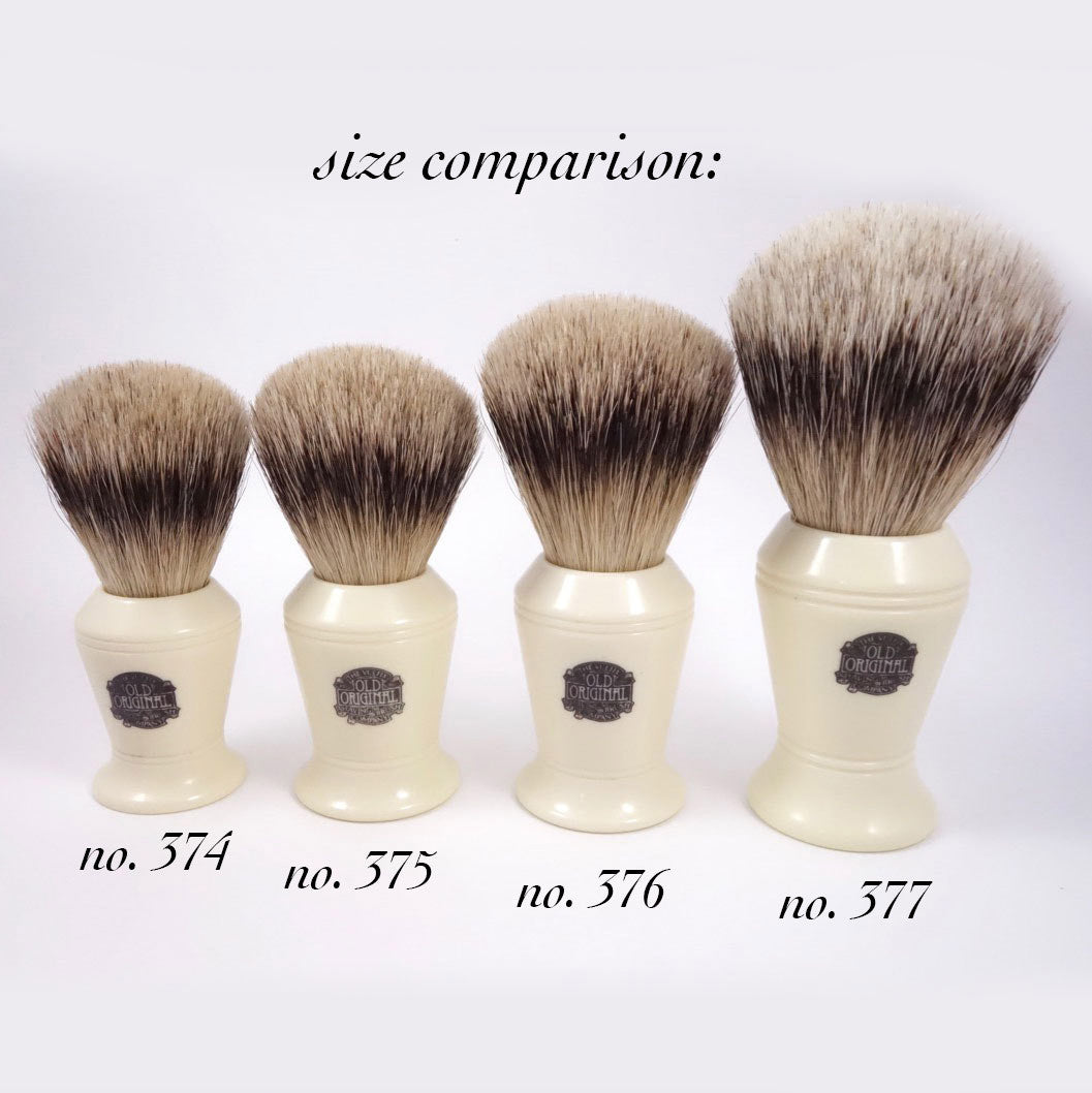 The Vulfix No. 374 Best Badger Shaving Brush is hand made in England using traditional methods such as hand-tying of the badger hair knots and lathe-turned handles.