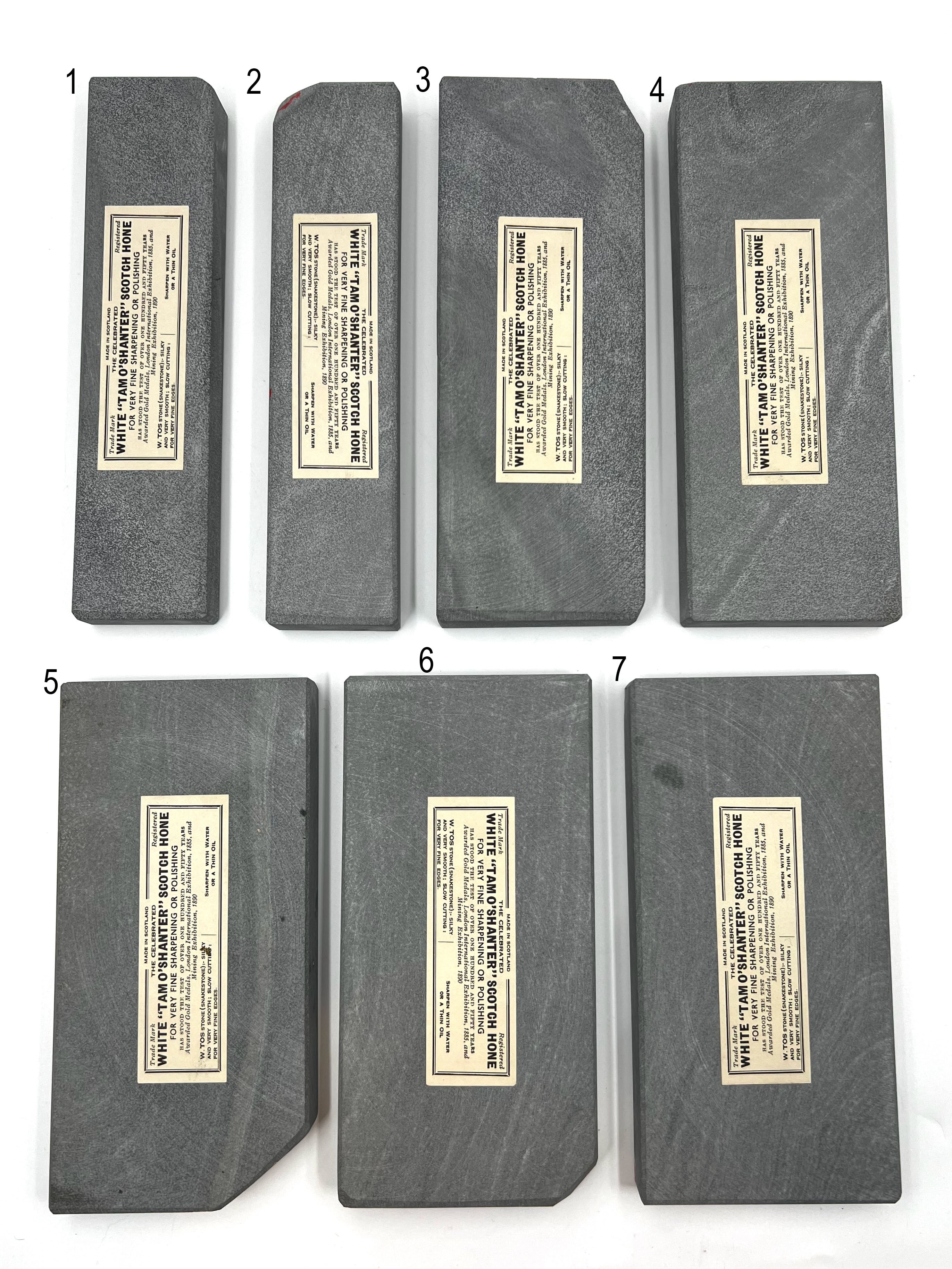They are offered in large sizes never produced by the workshop, are lapped perfectly flat and ready to use immediately and have the vintage paper labels from the mine. Some may have a little bit of red paint remaining on the hone edges or backside, from the red paint originally used to seal the blocks by the workshop.